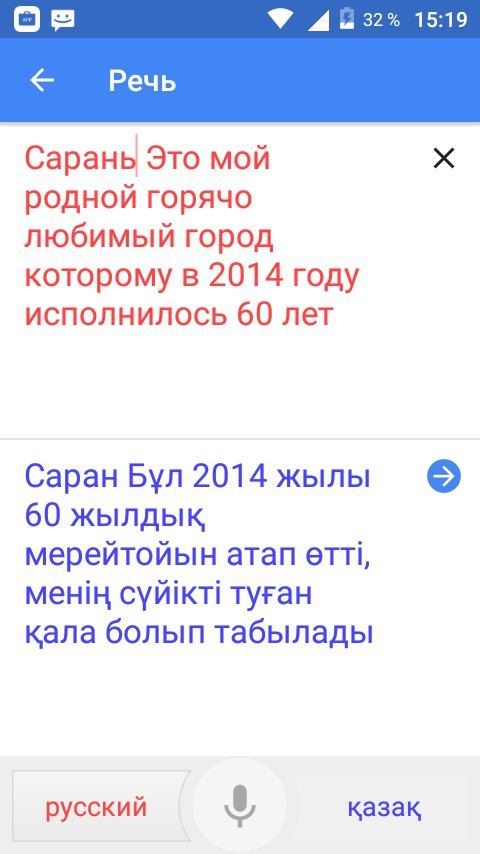 Сарань это мой родной и горячо любимый город, которому в 2014 году исполнилось 60 лет перевести на казахский