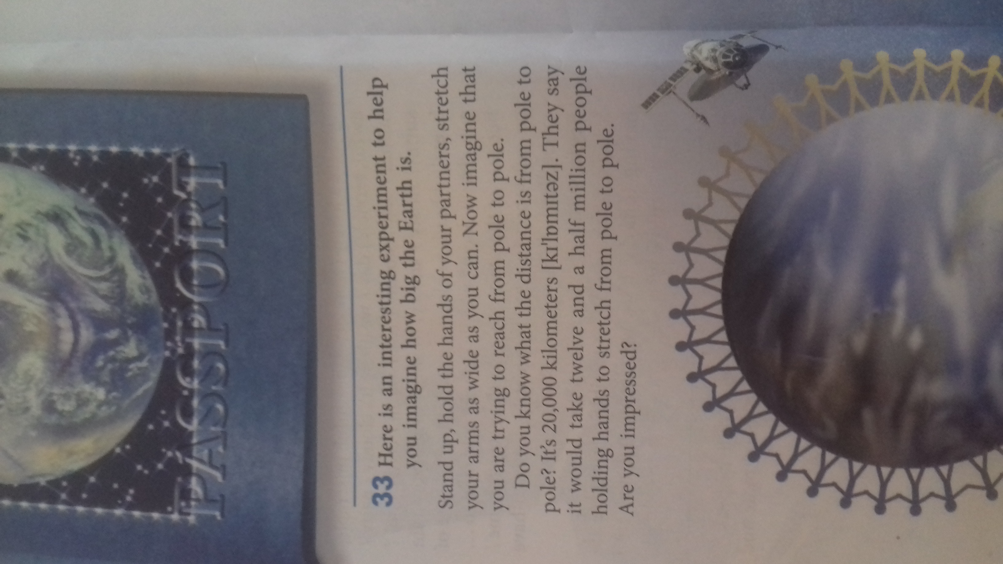 Встаньте, возьметесь руками со своим соседом, раздвиньте руки настолько, на сколько это возможно. Теперь представьте что вы пытаетесь достигнуть от полюса до полюса.