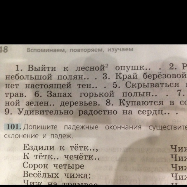 Пропуски: опушкЕ, полянЕ, тенИ, полынИ, зеленИ, сердцЕ