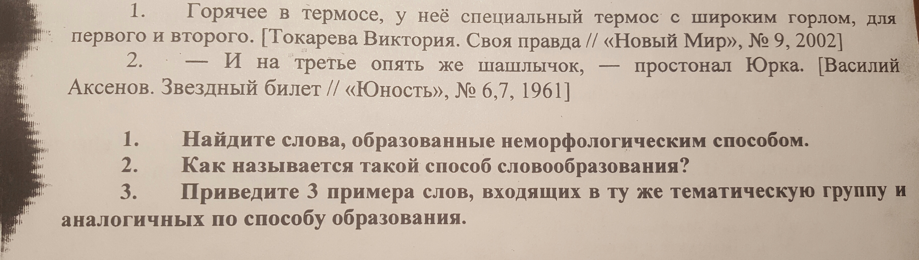 1) горячее, для первого, второго, на третье - эти слова образованы неморфологическим способом.