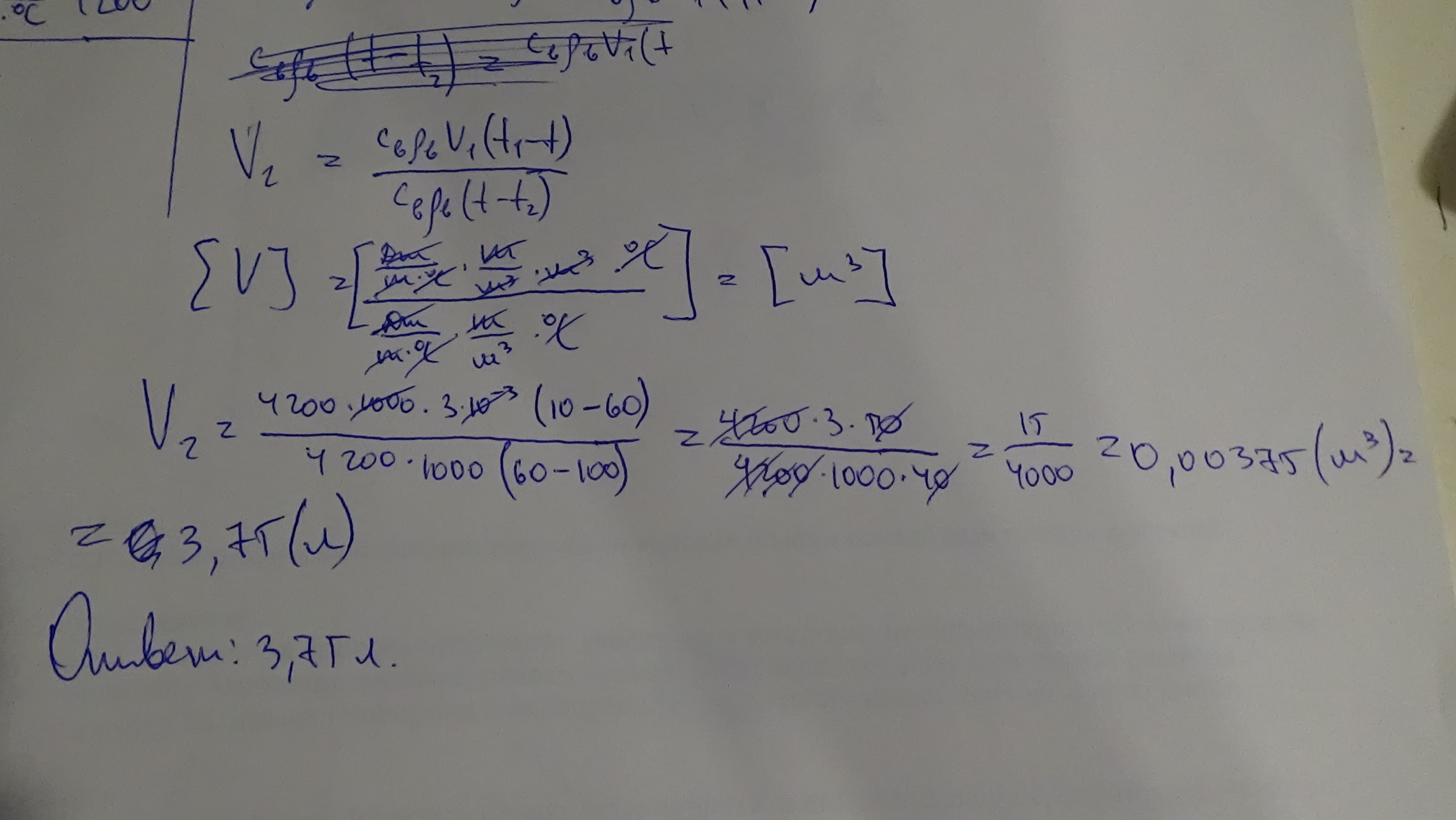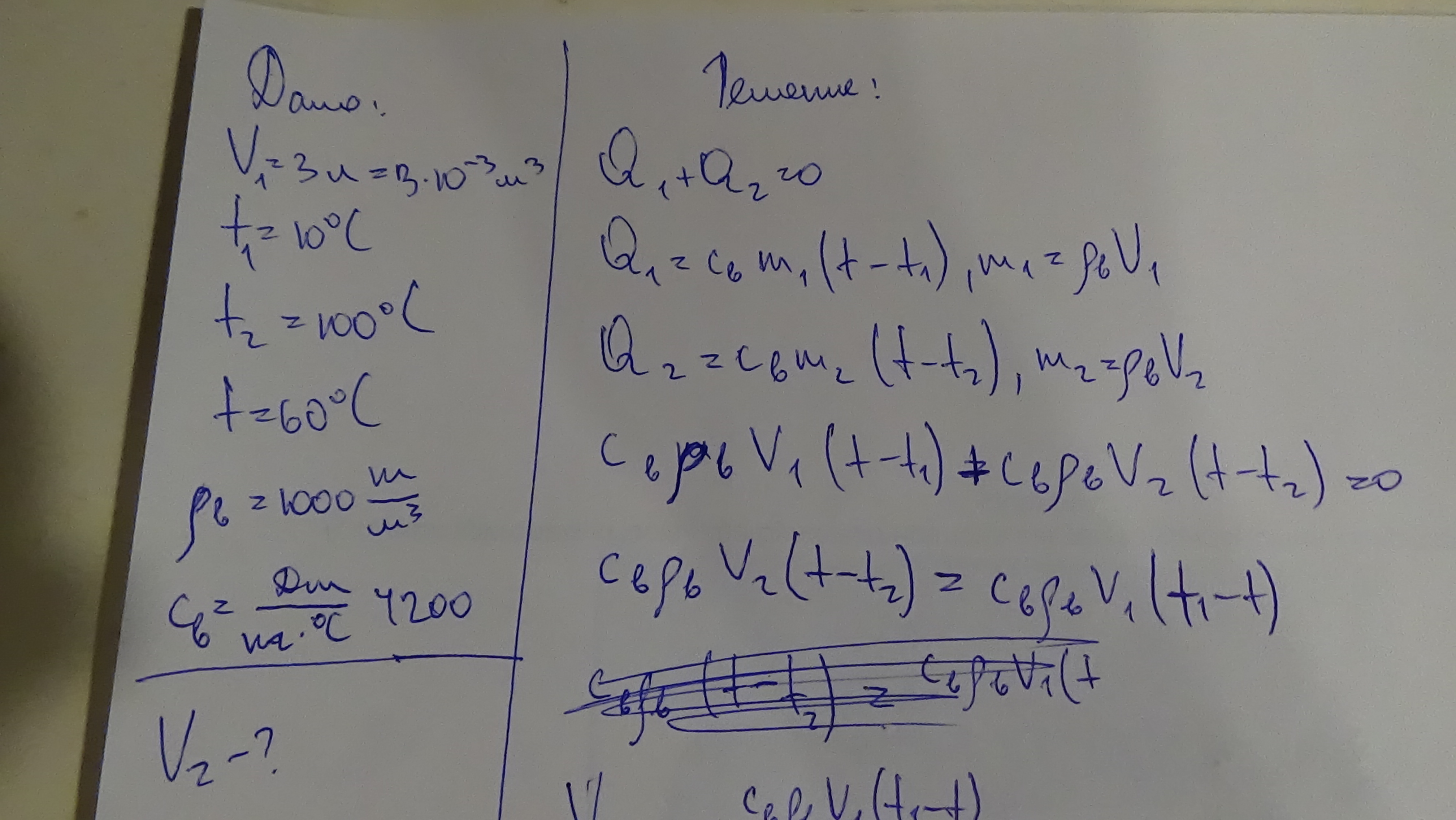 Чтобы вымыть посуду , мальчик налил в таз 3 л воды , температура которой равна 10 °с . Сколько литров кипятка (при 100 °с ) нужно долить в таз , чтобы температура воды в нем стала равной 60°с