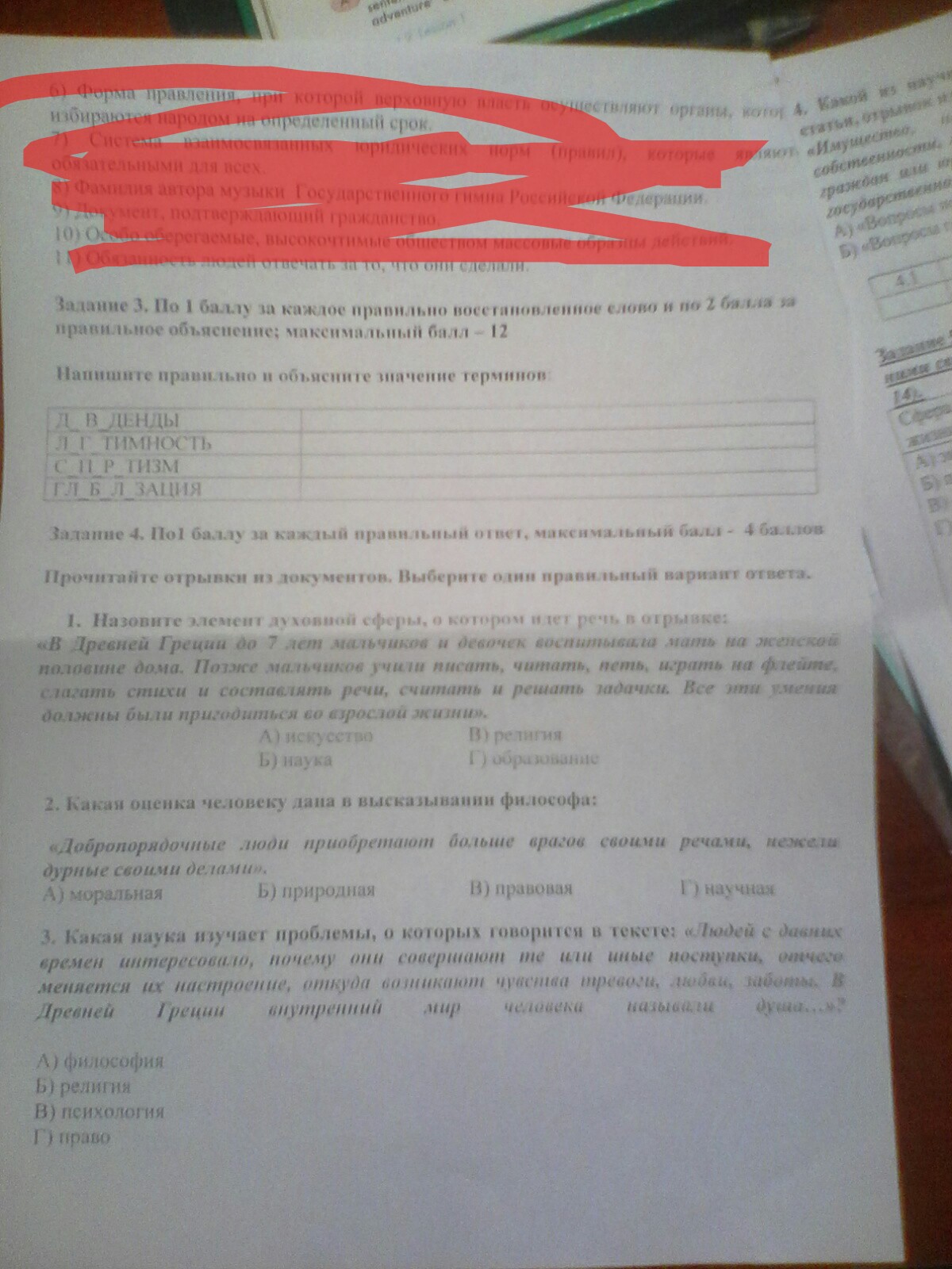 Ответы - буквы