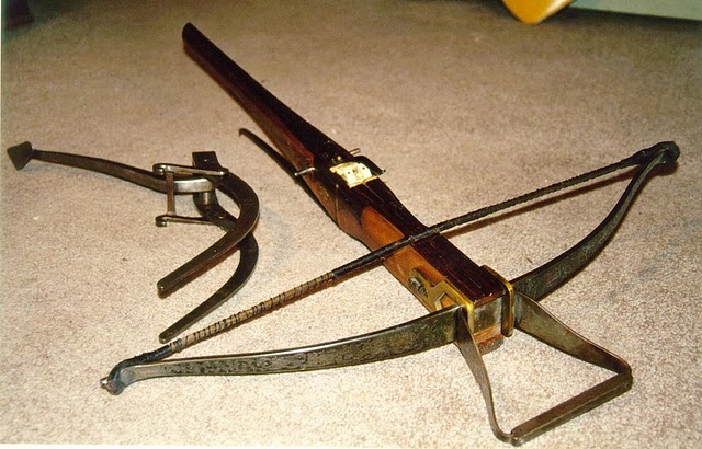 Старинное ручное метательное оружие в форме лука. В средние века из него стреляли воины западной Европы. Тетеву на стальном луке им приходилось натягивать с помощью специального ворота, поэтому заряжать это оружие было делом небыстрым. Зато в руках умелого воина оно стреляло гораздо дальше и било сильнее, чем обычный лук. Как же это оружие называлось?