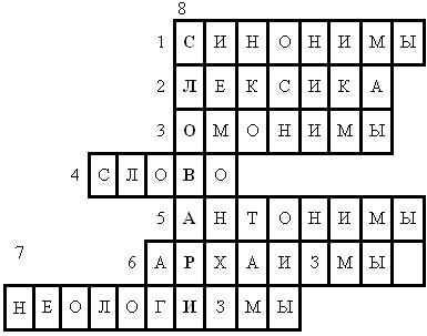 1.Синонимы,2.Лексика,3.Омонимы,4.Слово,5.Анонимы,6.Архаизмы,7Неологизмы