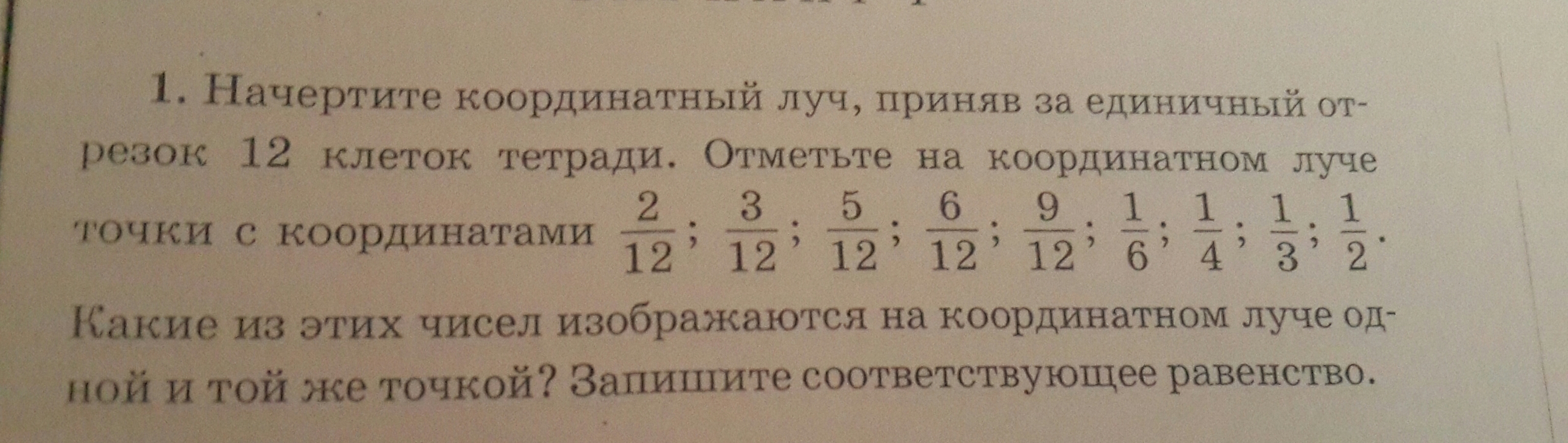 одной и той же точкой на координатном луче обозначаются точки: 212 и 16, 312 и 14,612 и 12.