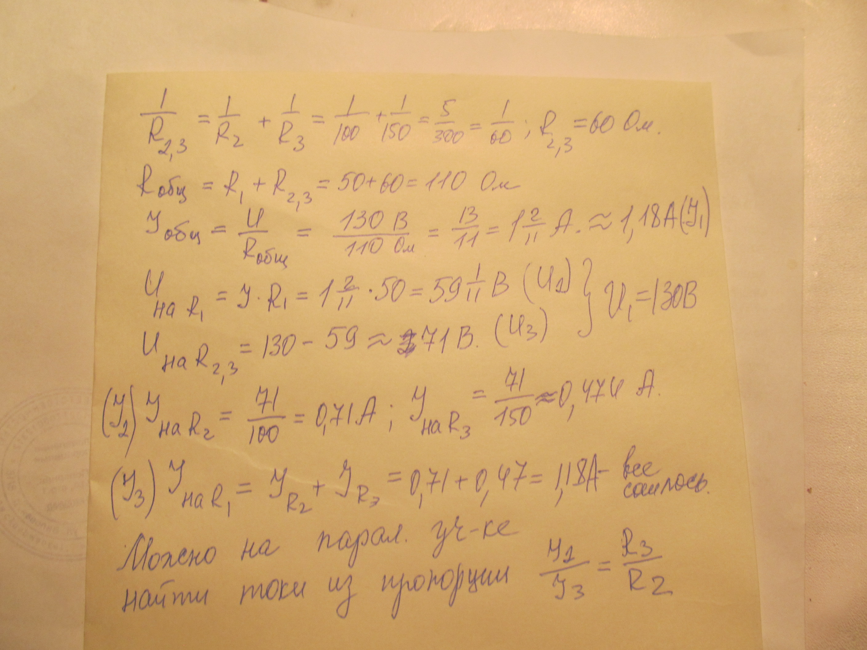 Для электрической цепи, чья схема приведена ниже данного абзаца, рассчитать все токи и падения напряжения (I1, I2, I3, U1, U2, U3). Параметры элементов: R1 = 50 Ом, R2 = 100 Ом, R3 = 150 Ом. (Решите: Вариант 2).