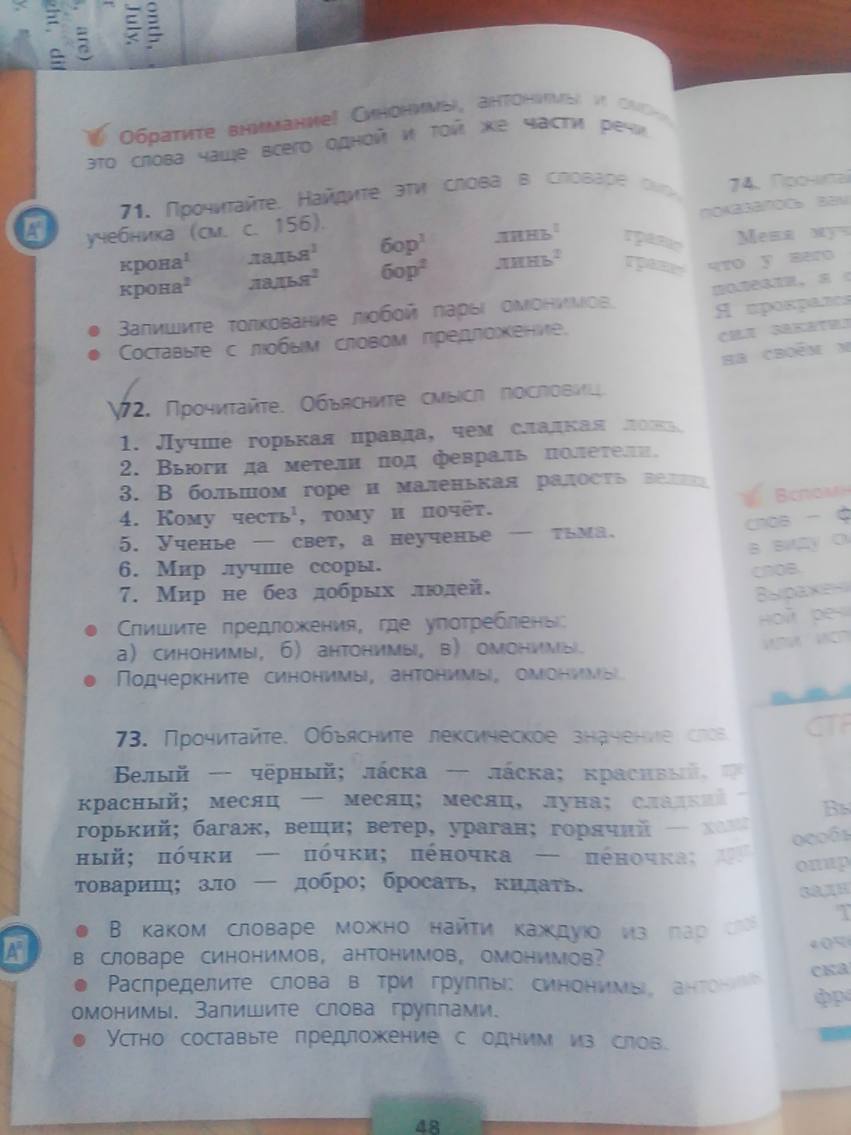 помогите пожалуйста) упр. 72 мне почти всё понятно но Подчеркните синонимы,антонимы и омонимы
