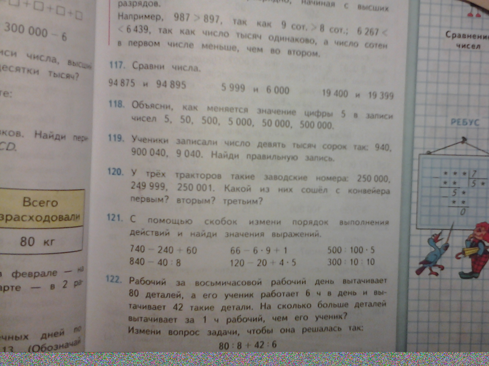с помощью скобок измени порядок выполнения действий и найди значения выражений.Номер 121