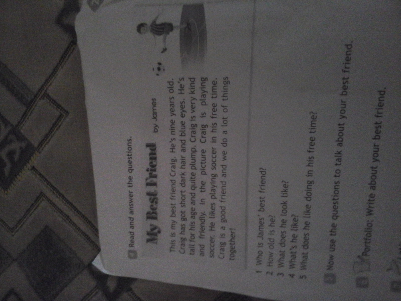 Вис ис май бэст фрэнд Крэйг. Хис найн еарс олд. Крэйг хэс гот шорт дарк хэир энд блу айс. Хис тэл фор хис эйдж анд куит пламп. Крэйг ис вэри кайнд энд фрэндли. Ин вэ пикча Крэйг ис плэинг соцэр. Хи лайкс плэинг соцер ин хис фри тайм. Крэйг ис э гуд фрэнд энд ви ду э лот оф фингс тогевэр.