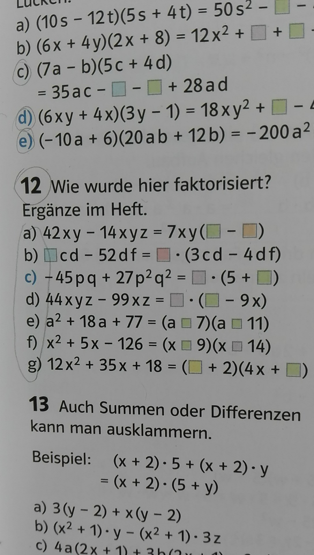 а)7xy(6-2z)