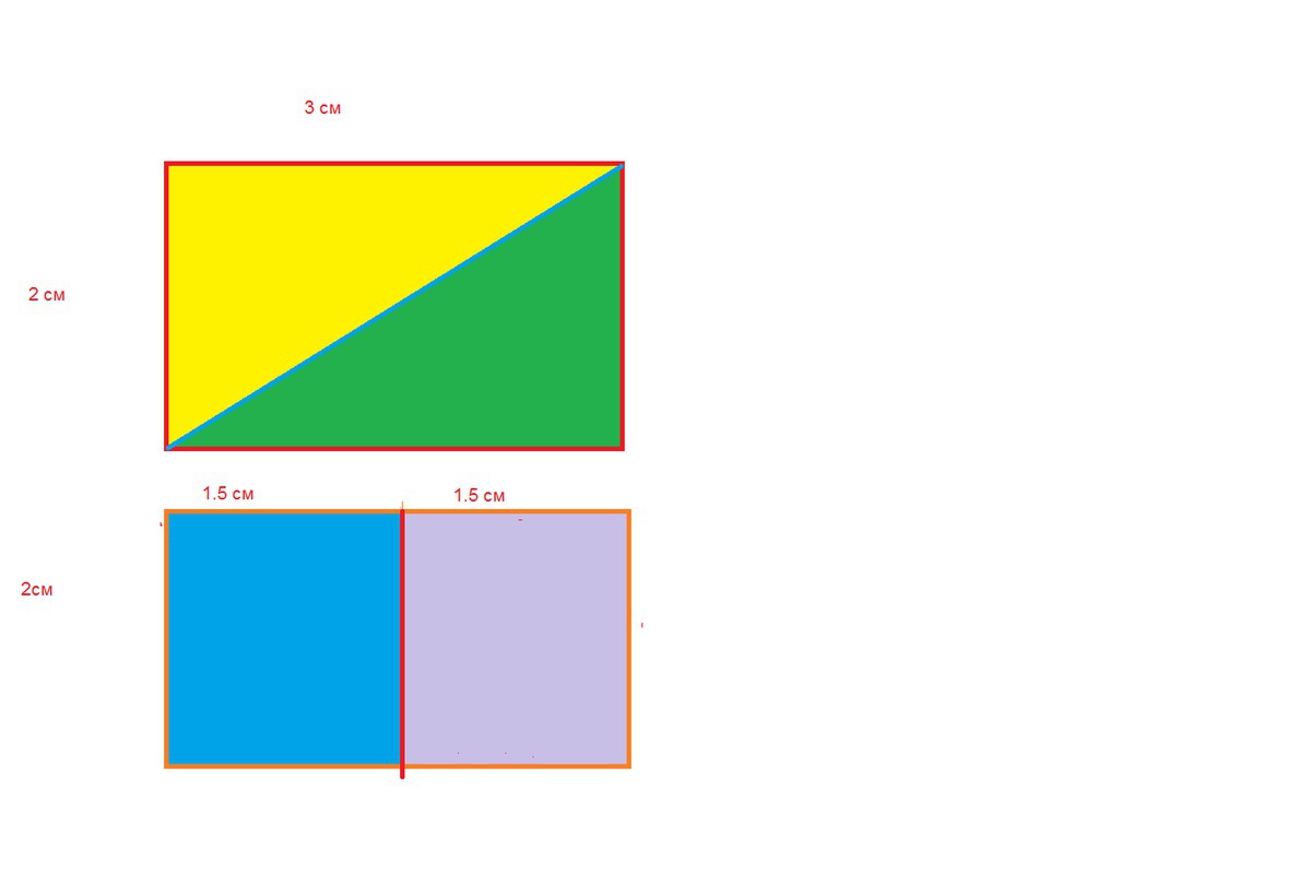 2.Проведи в этом прямоугольнике один отрезок так,чтобы прямоугольник был разбит на 2 одинаковых треугольника,на 2 одинаковых прямоугольника.Найди разные способы.