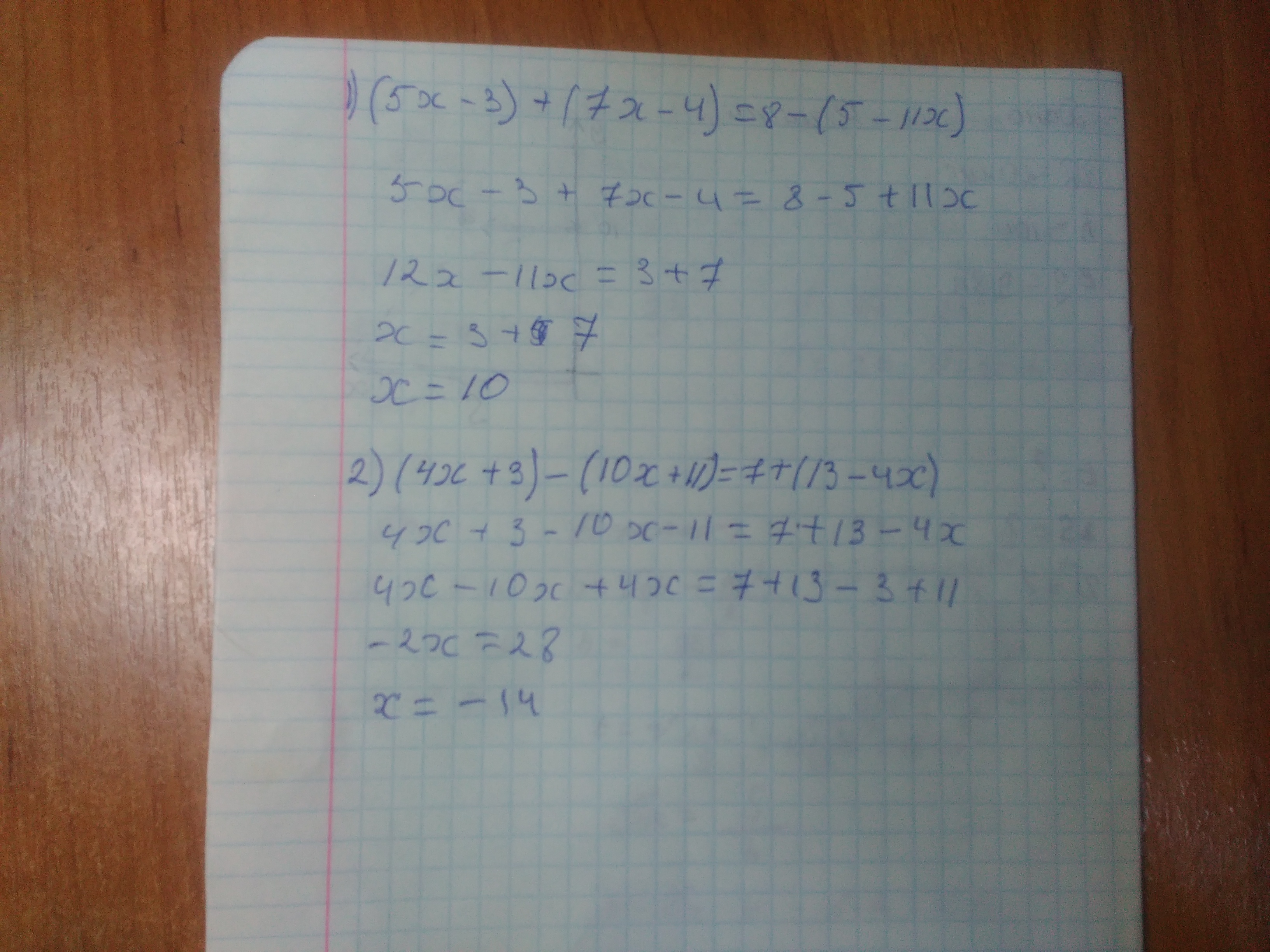 (5х-3)+(7х-4)=8-(5-11х) раскроем скобки