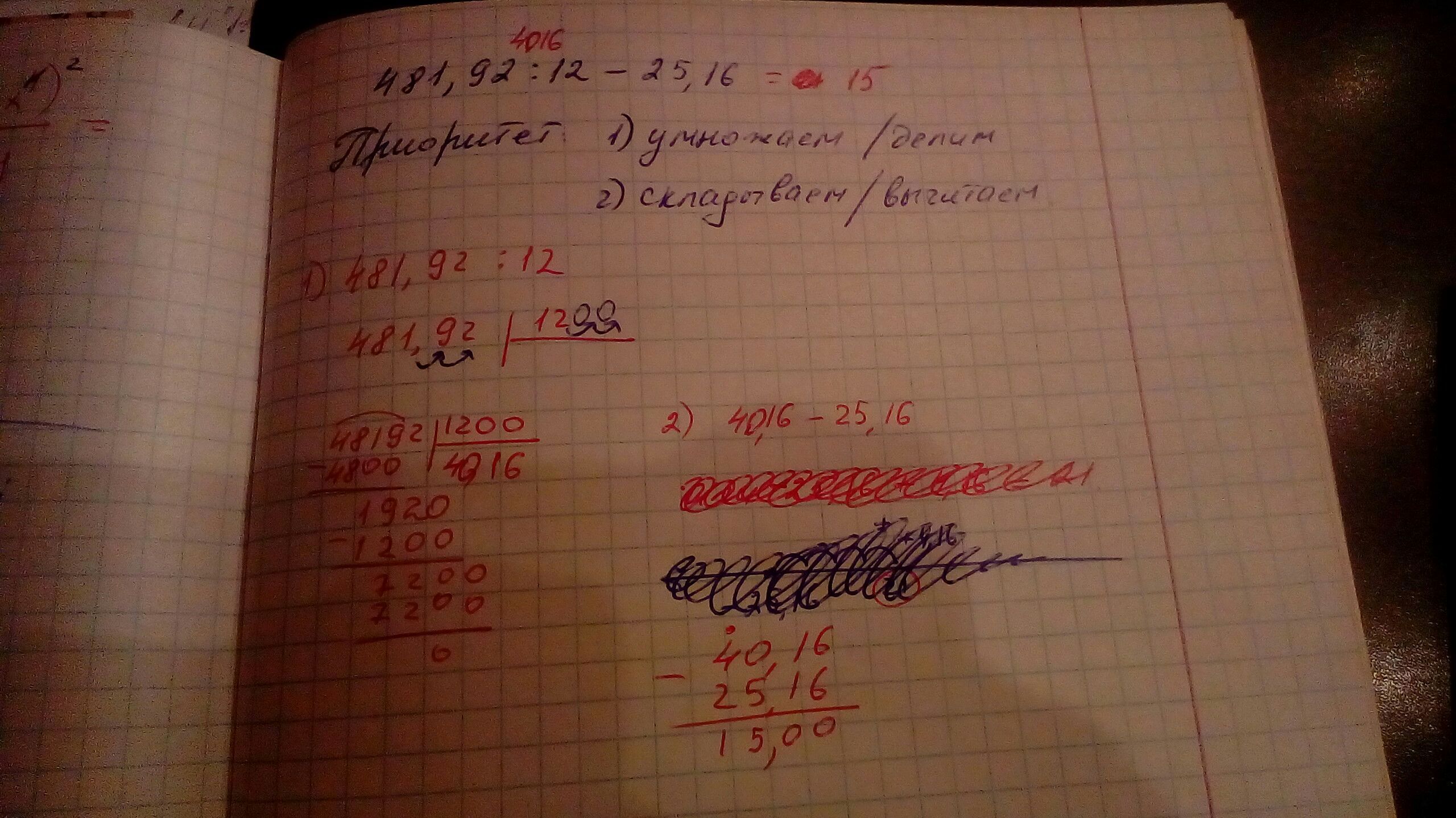 4) 481,92:12 -25,16 = 40,16-25,16 = 15. В начале деление патом вычитание.