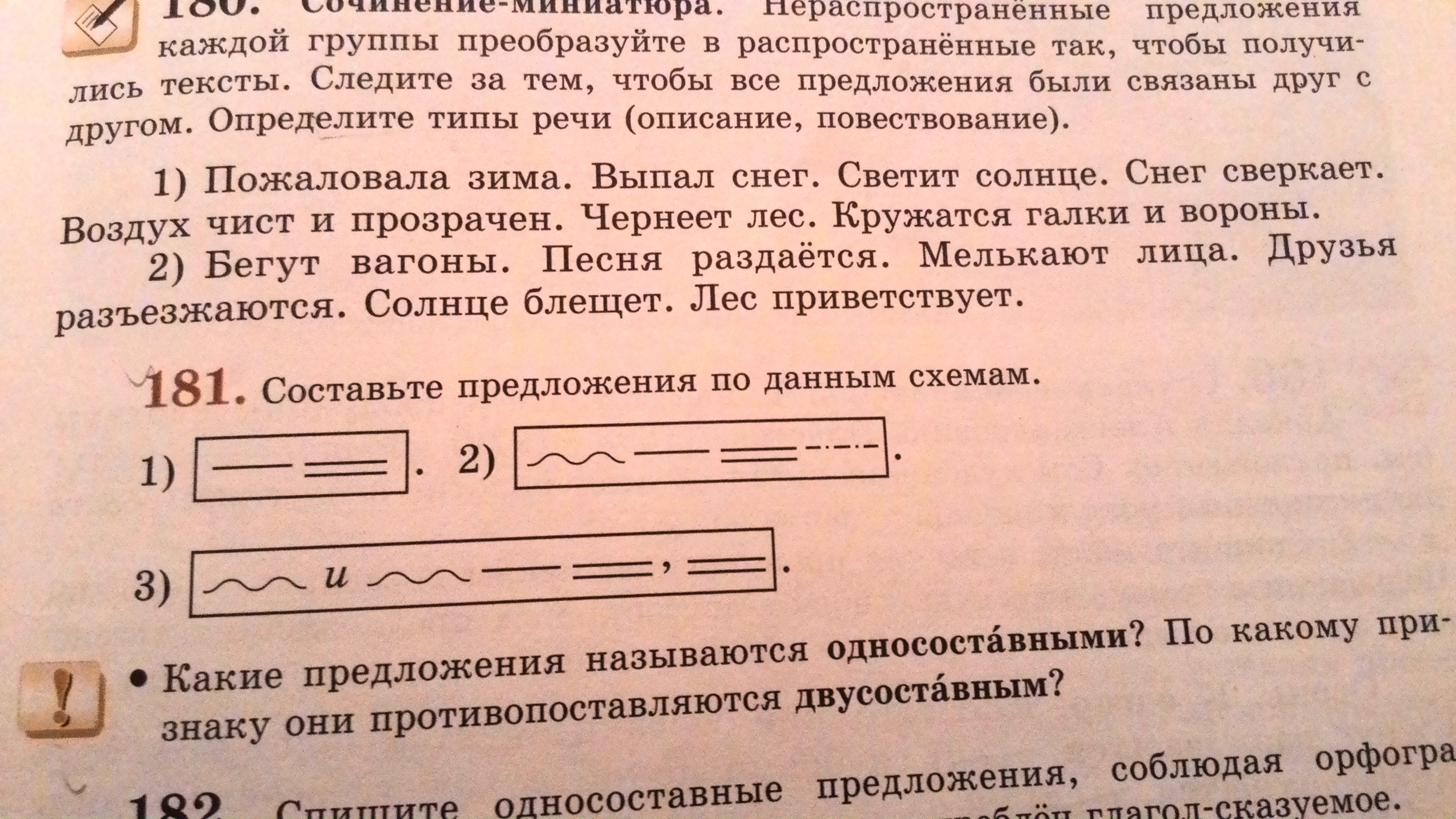 СОСТАВЬТЕ ПРЕДЛОЖЕНИЯ ПО ДАННЫМ СХЕМАМ ,ПОЖАЛУЙСТА , СРОЧНО НУЖНО ДО 19:20 ПО МСК , НОМЕР 181