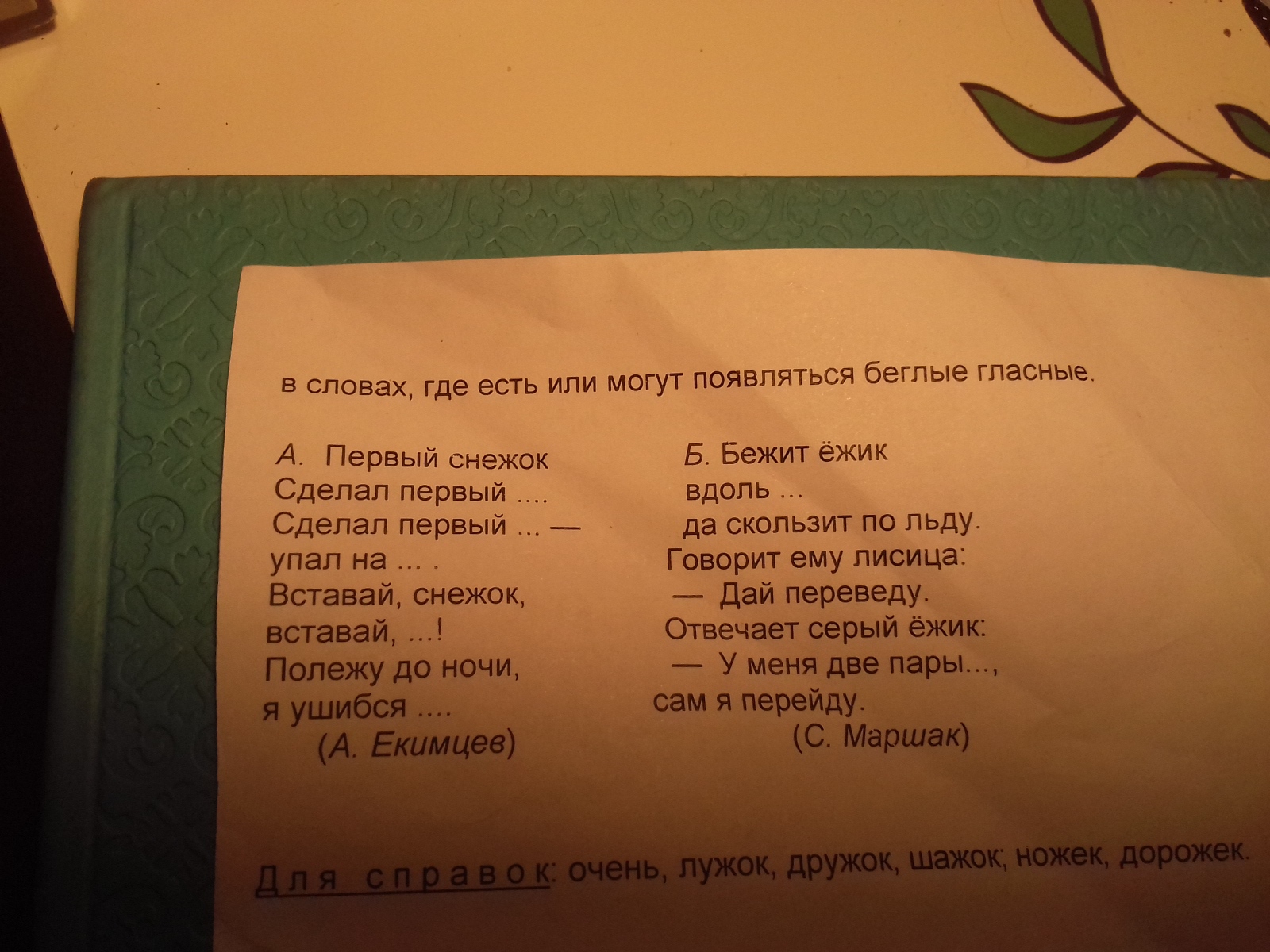 Спишите стихотворения,вставляя пропущенные слова.Обозначьте корни в словах , где есть или могут появляться беглые гласные