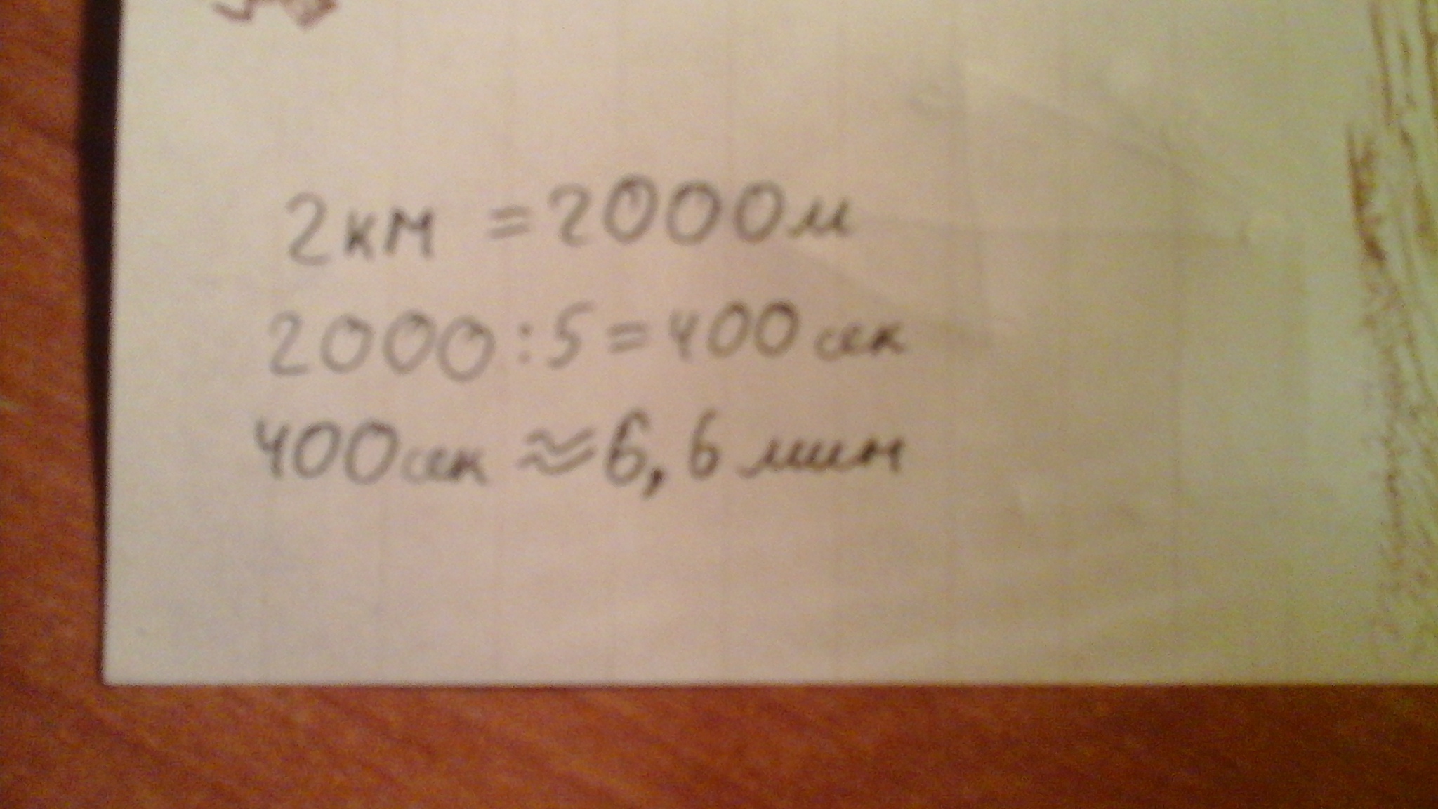Определить время которое займёт спуск на парашюте с высоты 2км при скорости равномерного снижения 5м/с?