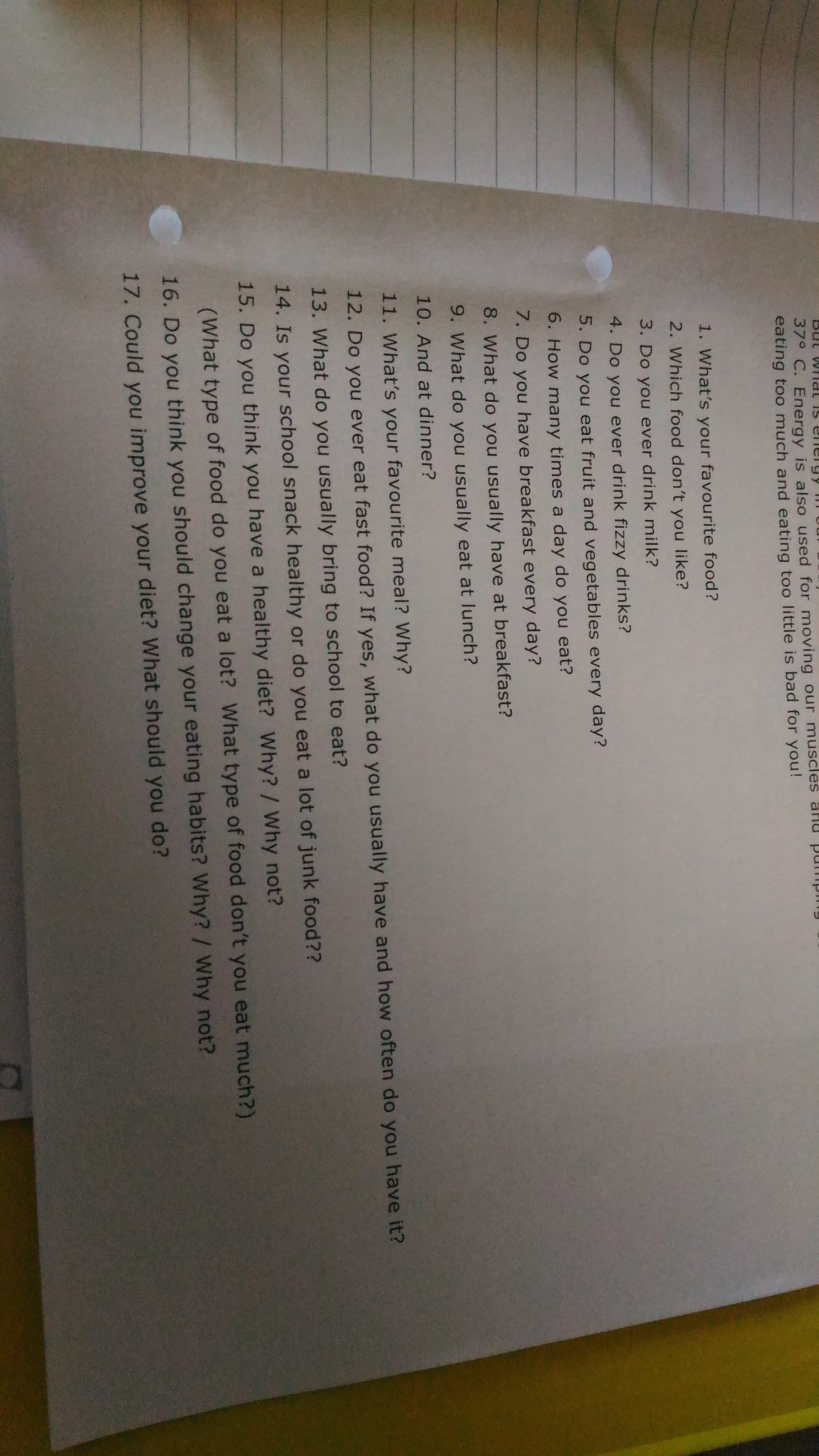 16. Ты считаешь, что тебе нужно изменить свои привычки в еде? Почему/ почему нет?