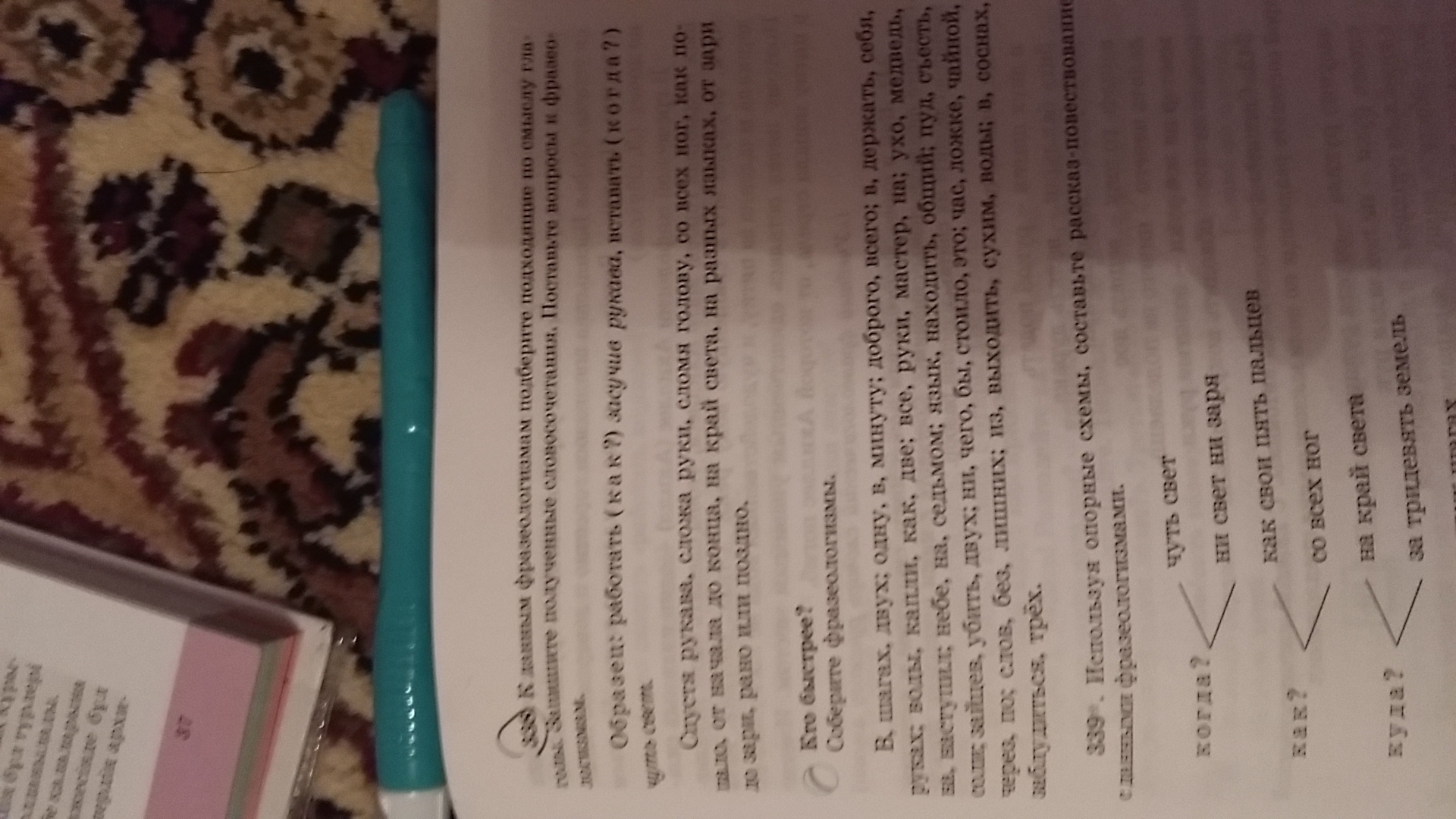 сидеть ( как?) сложа руки, нестись ( как?) сломя голову, бежать ( как?) со всех ног, делать ( как?) как попало, читать ( как?) от начала до конца, ехать ( куда?) на край света, говорить (как?) на разных языках, работать (как?) от зари до зари, закончится (когда?) рано или поздно