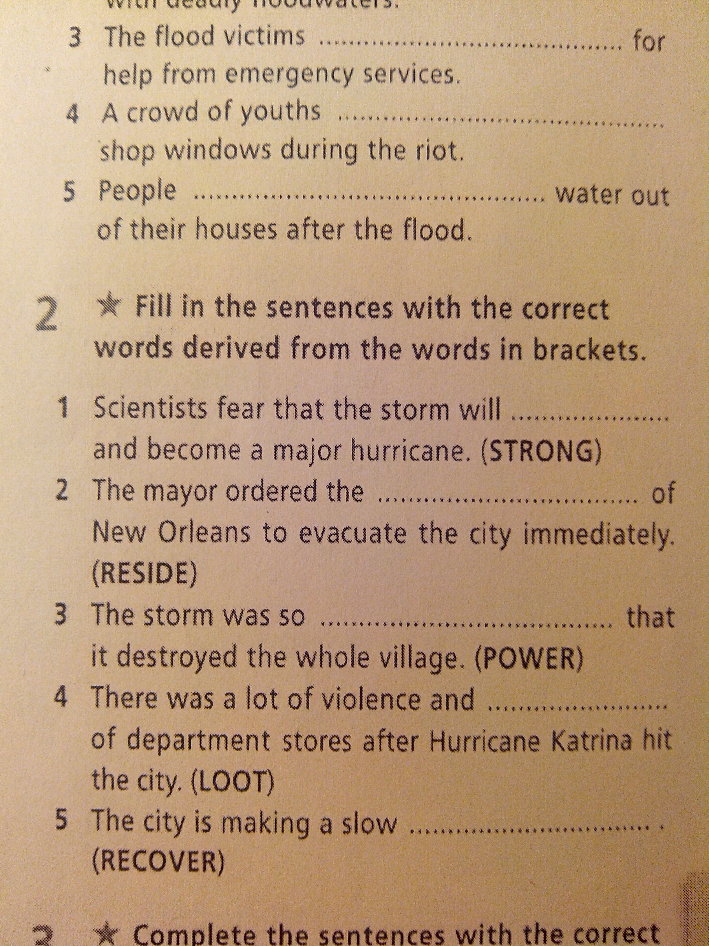1) strengthen 2) residents 3) powerful 4) looting 5) recovery