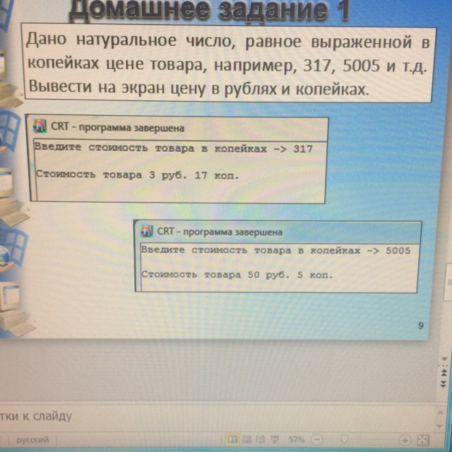 writeln('Стоимость товара ',cost div 100,' руб. ',cost mod 100,' коп.');