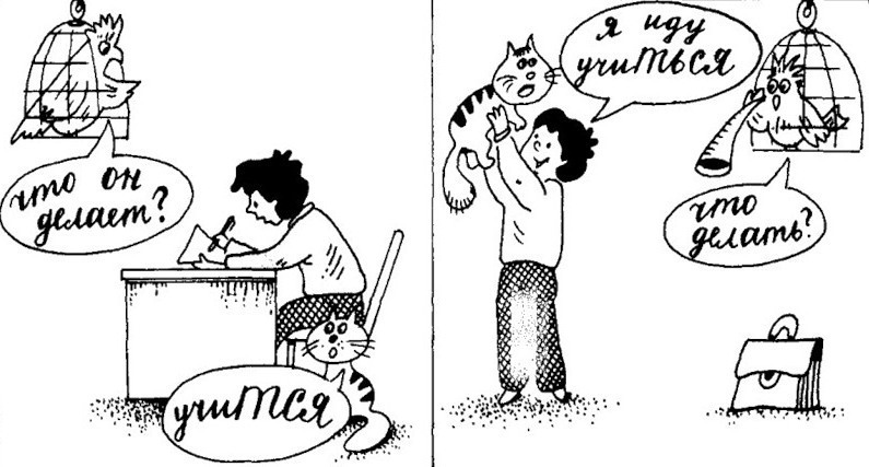 -тся - перечеркнутый Ь (потому что глаголы, которые отвечают на вопросы "что делает", "что сделает" пишутся через -тся. Нет Ь в вопросе - нет и в глаголе)