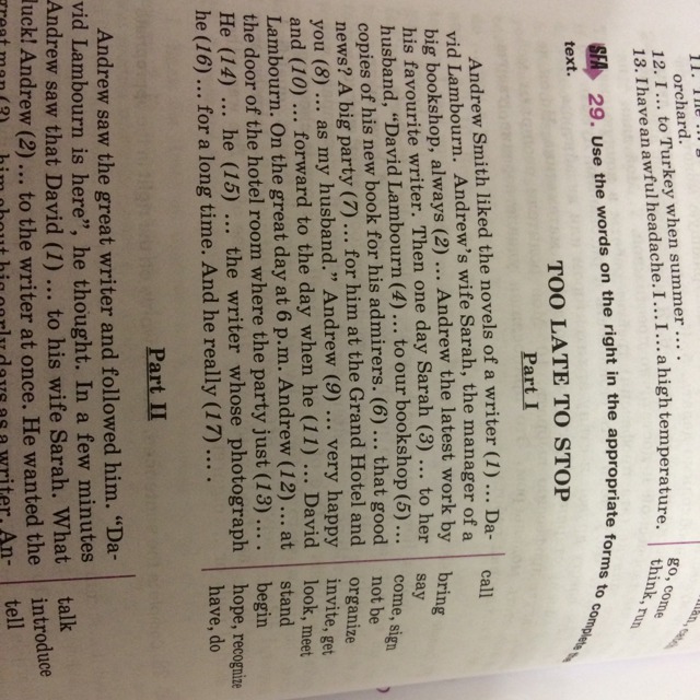 1)called, 2)has been bringing, 3) said, 4)is coming, 5) to sign, 6)isn't , 7)is organising, 8) you are invited, 9)got, 10)was looking forward, 11) Will meet, 12)was standing, 13) has just began, 14)hope, 15) will recognize, 16)had, 17)did