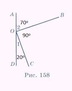 ∠1 = ∠DOC = ∠AOD - ∠AOB - ∠BOC = 180° - 70° - 90° = 20°.