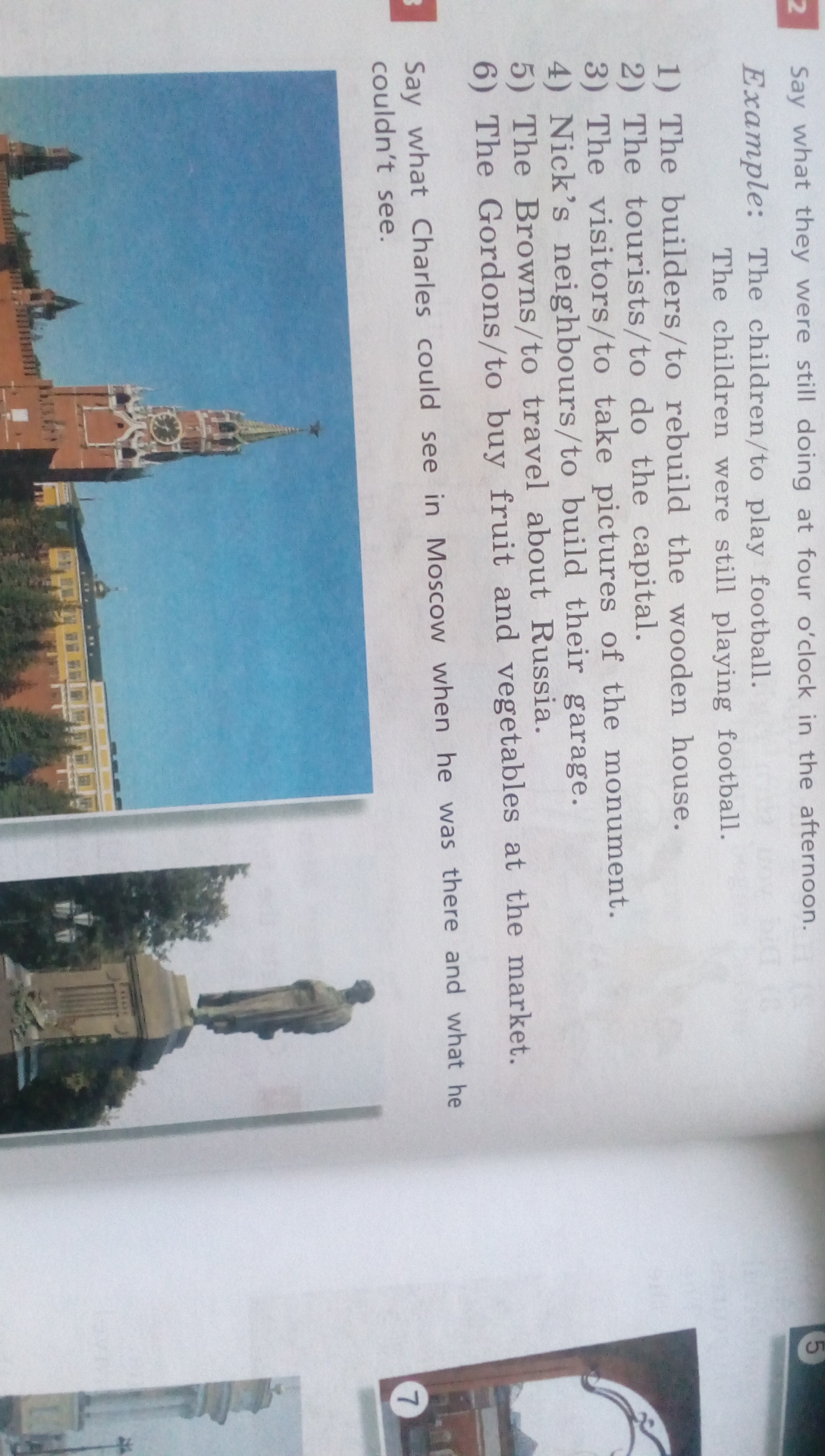 1. The builders were still rebuilding the wooden house at 4 o'clocck in the afternoon.