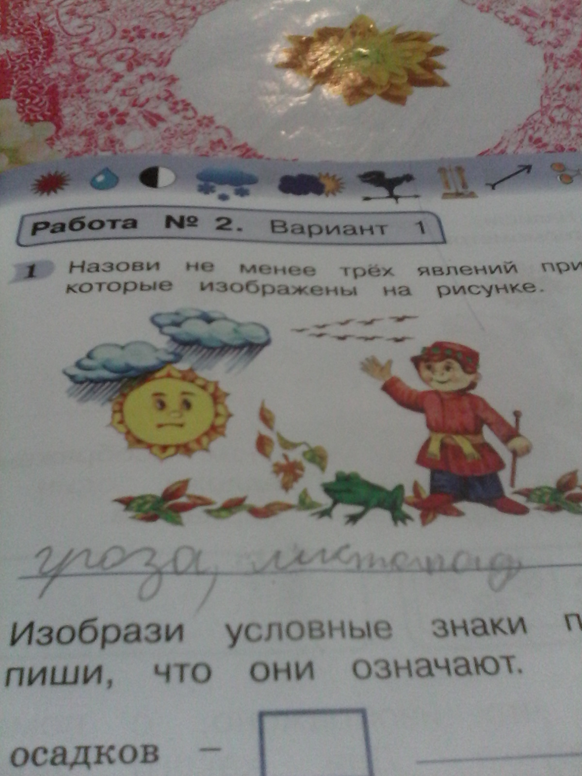 Три явления природы, на котором изображены на рисунке:Ветер,Листопад,Солнечность,Дождь,Облачность.
