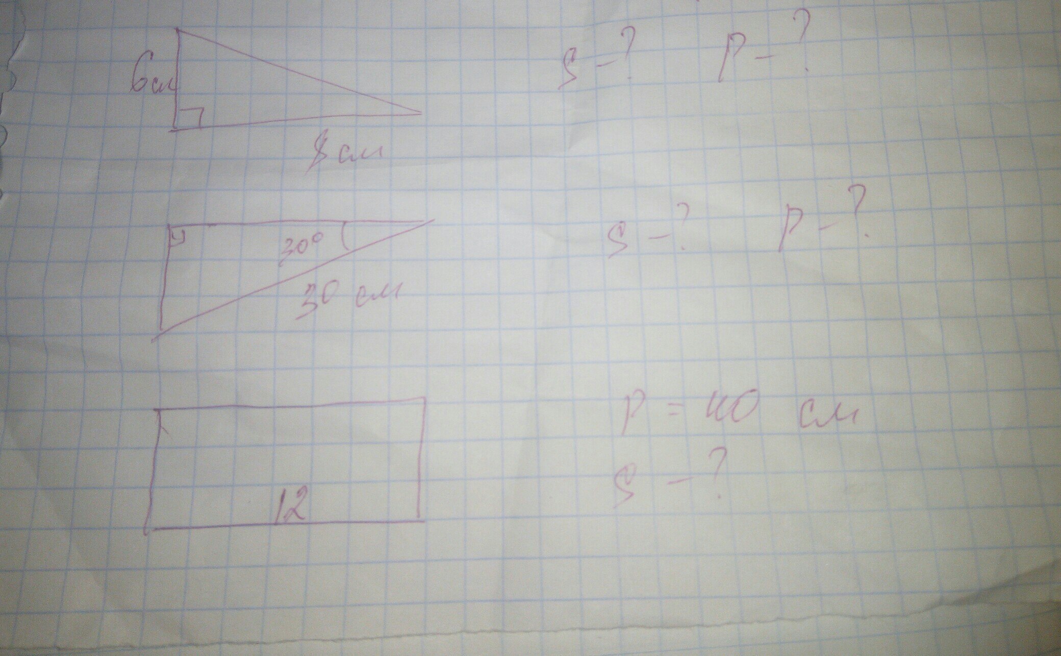 1)S=6*8/2=24м2, P=6+6+8+8=28/2=14 см