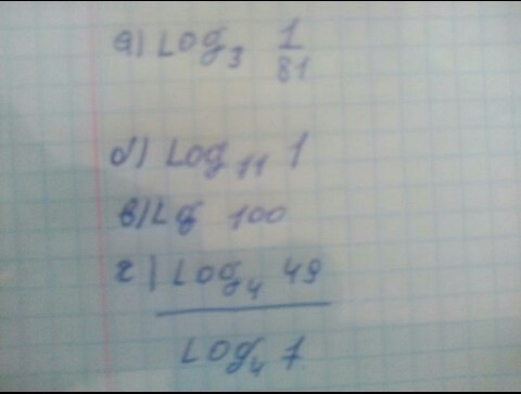 решение последнего задания Log49 по осн.4 = 1/2 Log7^2 по основанию2. А Log 7 по осн.4=1/2Log7по осн.2.