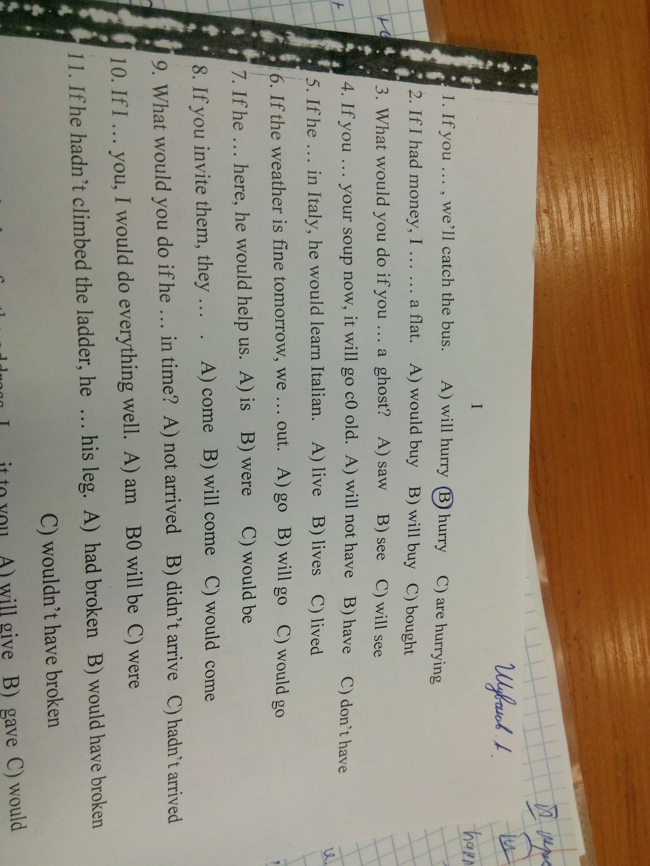 2)a; 3)b; 4)b; 5)c; 6)b; 7)c; 8)b; 9)c; 10)c.