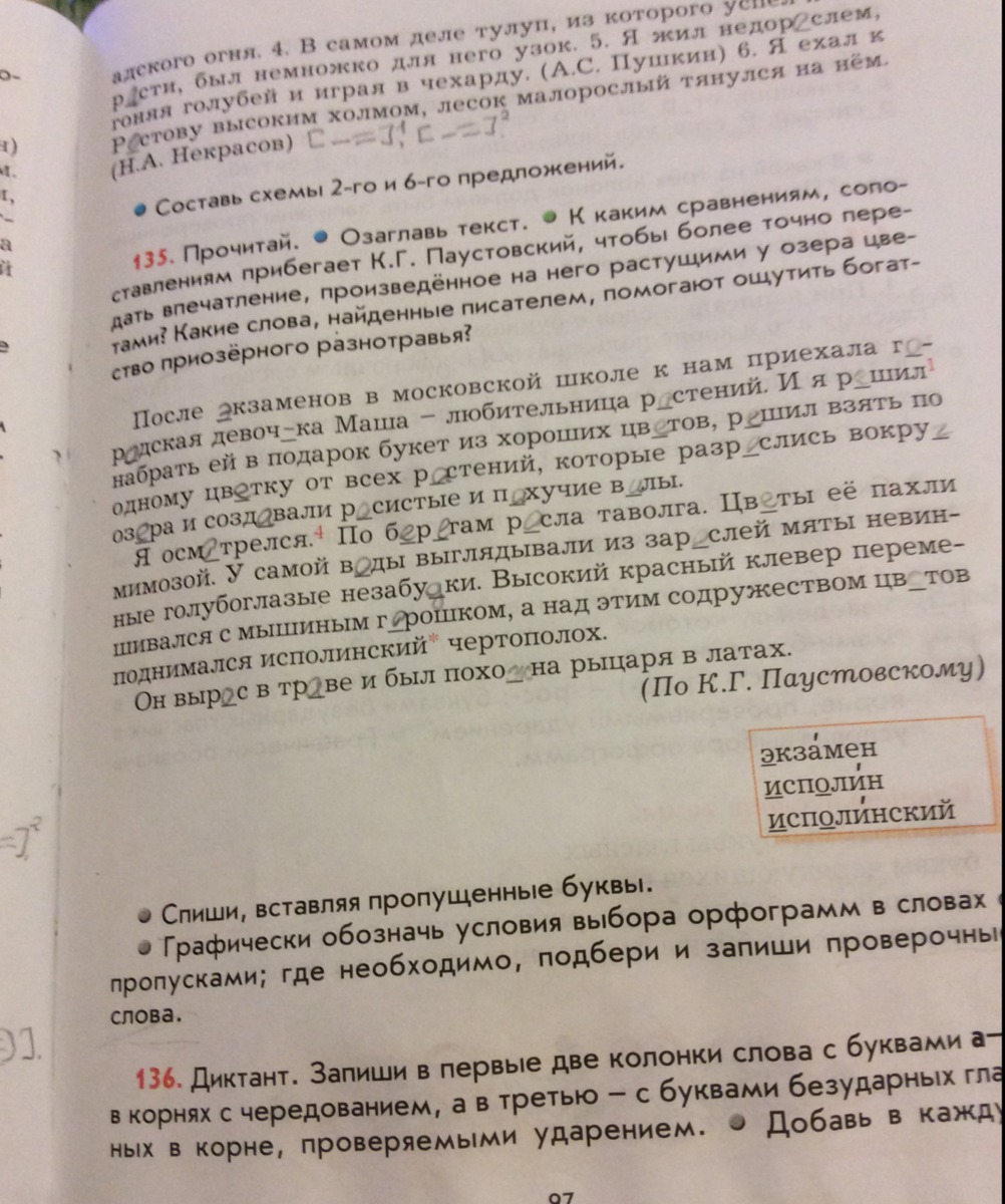 Помогите, пожалуйста!!! 135 упражнение. Вместе с заданием в низу. И проверьте, пожалуйста, правильно ли я вставила буквы.