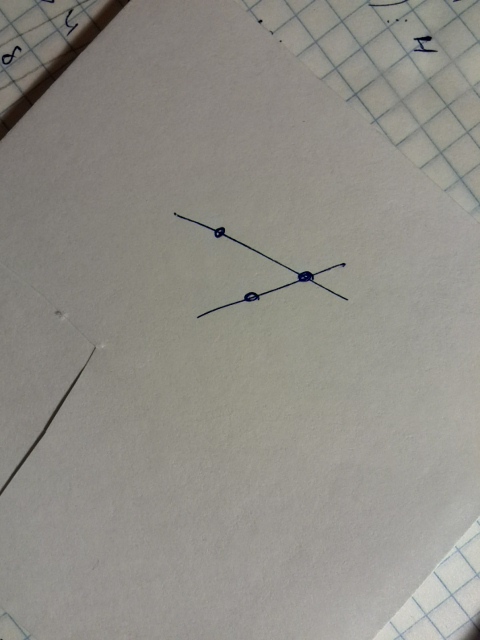 рисуешь две пересекающиеся прямые и ставишь точки как на фото