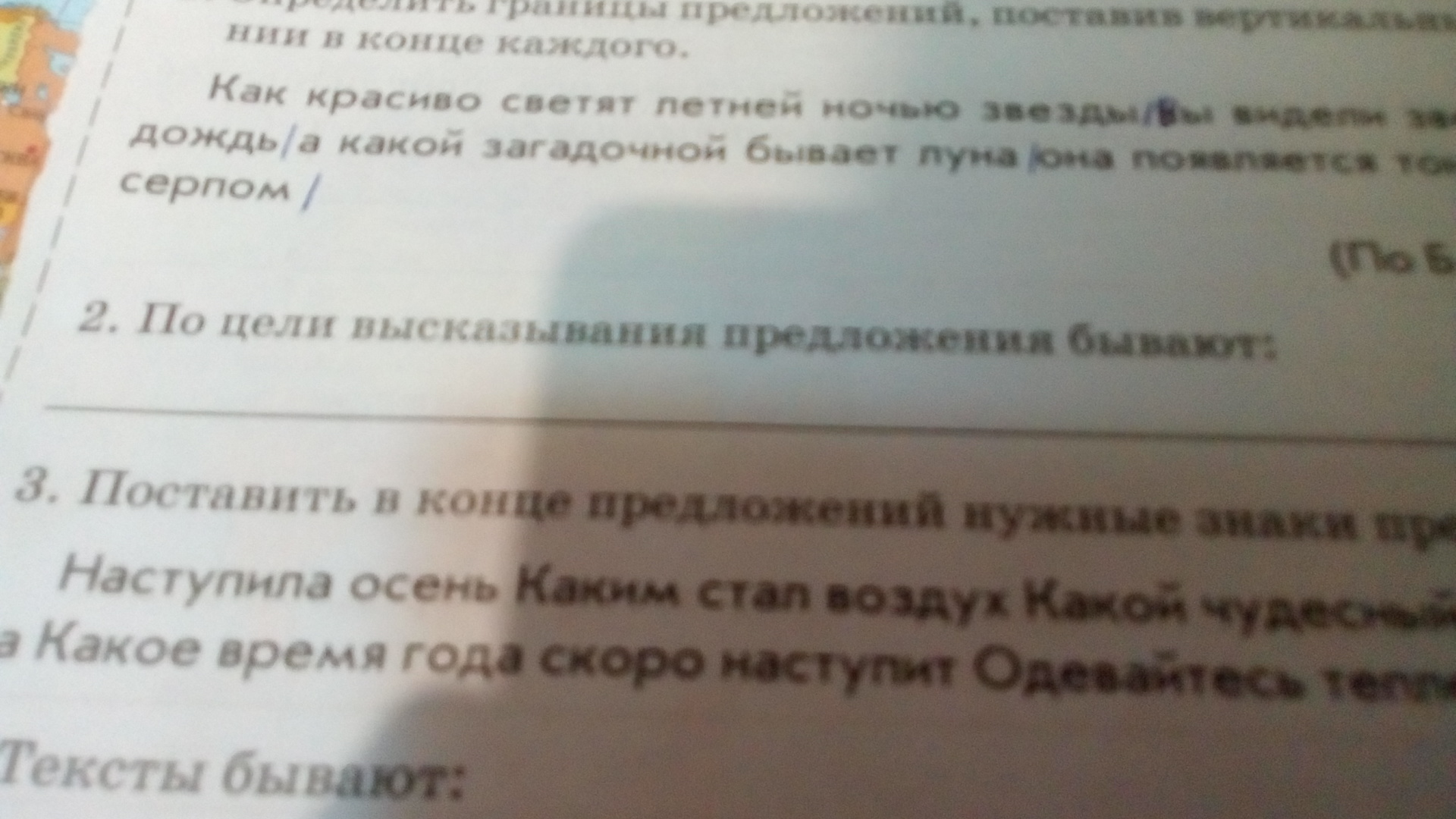 А здесь нужно написать по ЦЕЛИ ВЫСКАЗЫВАНИЯ. Они бывают: побудительные, повествовательные и вопросительные.