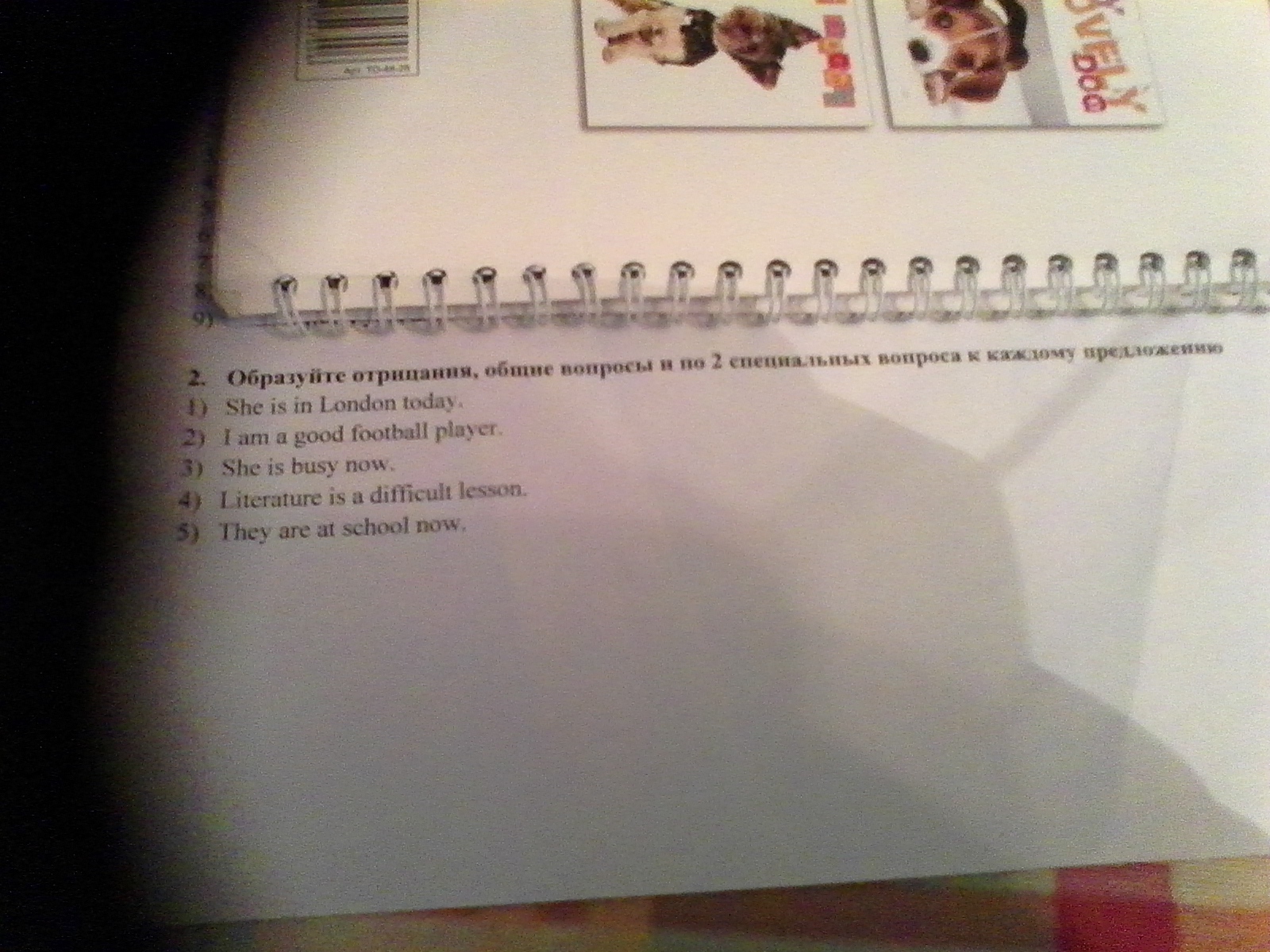 Образуется отрицания, общие вопросы и по 2 специальных вопроса к каждому предложению