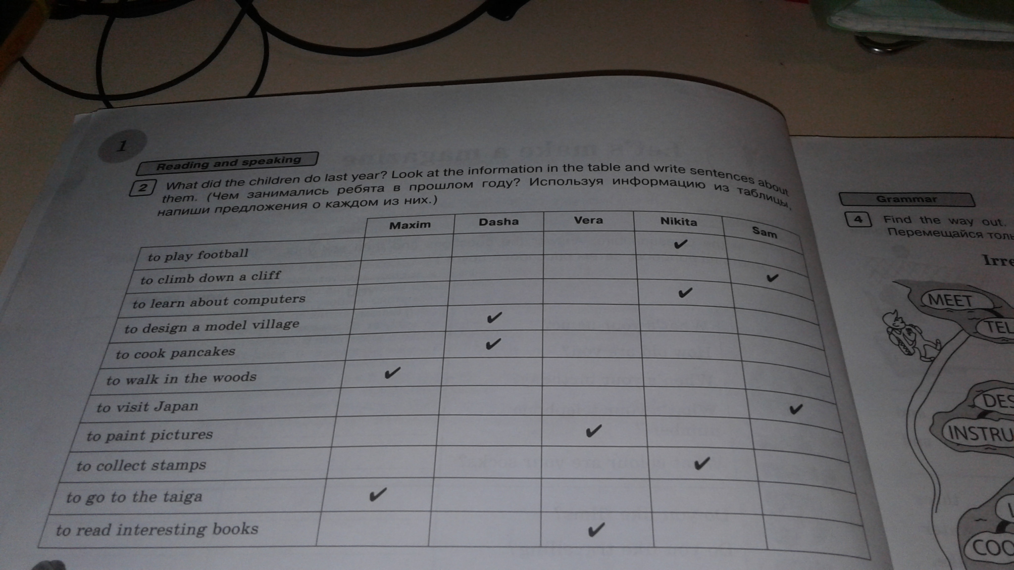 4)Last year Nikita has played footbal. Also he has collected stamps and learned about computers