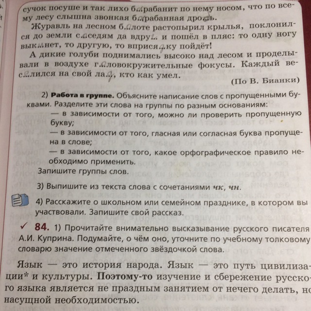 Вот текст-В поле давно уже проросла рожь, а лес всё уже стоял голый.Но уже было в нём весело.Солнце теперь вставало очень рано садилось поздно.Оно так усердно светило и грело ,что жить стало легко. Однажды вечером лёгкий зеленоватый туман окутал все берёзы, осины. А на следующий день на каждой веточке стали распускатся листья. Тут и начался лесной праздник. Засвистел защёлкал в кусте соловей. В каждой луже урчали и квакали лягушки.Цвели деревья и ландыши, майские жуки сгуденьем носились между ветвями. Звонко и радостно кукукала кукушка. По всему лесу слышалась звонкая барабанная дробь. Каждый веселился на свой лад.