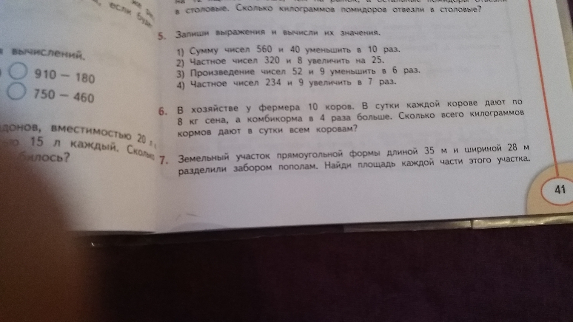 560+40:10=600:10=60. 320:8+25=40+25=65. 52•9:6=468•9=78. 234:9•7=26•7=182