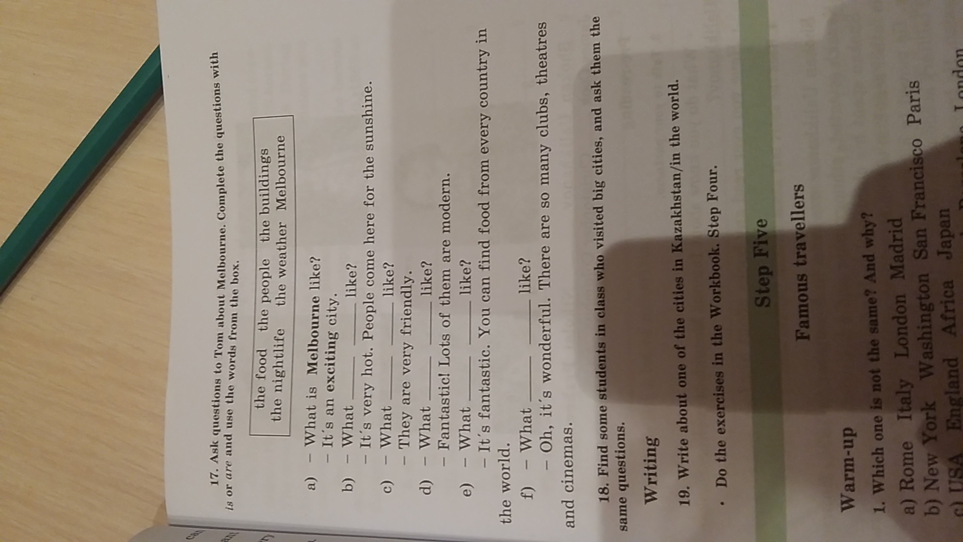B) what is the weather like? C) what are the people like? D) what are the buildings like? E) what is the food like? F) what is the nightlife like?