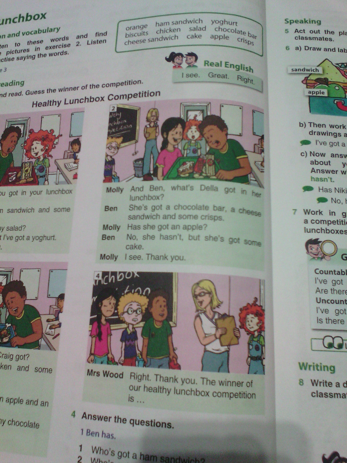 1)И Бен, что в коробке для завтраков (ланчбоксе) у Деллы?
