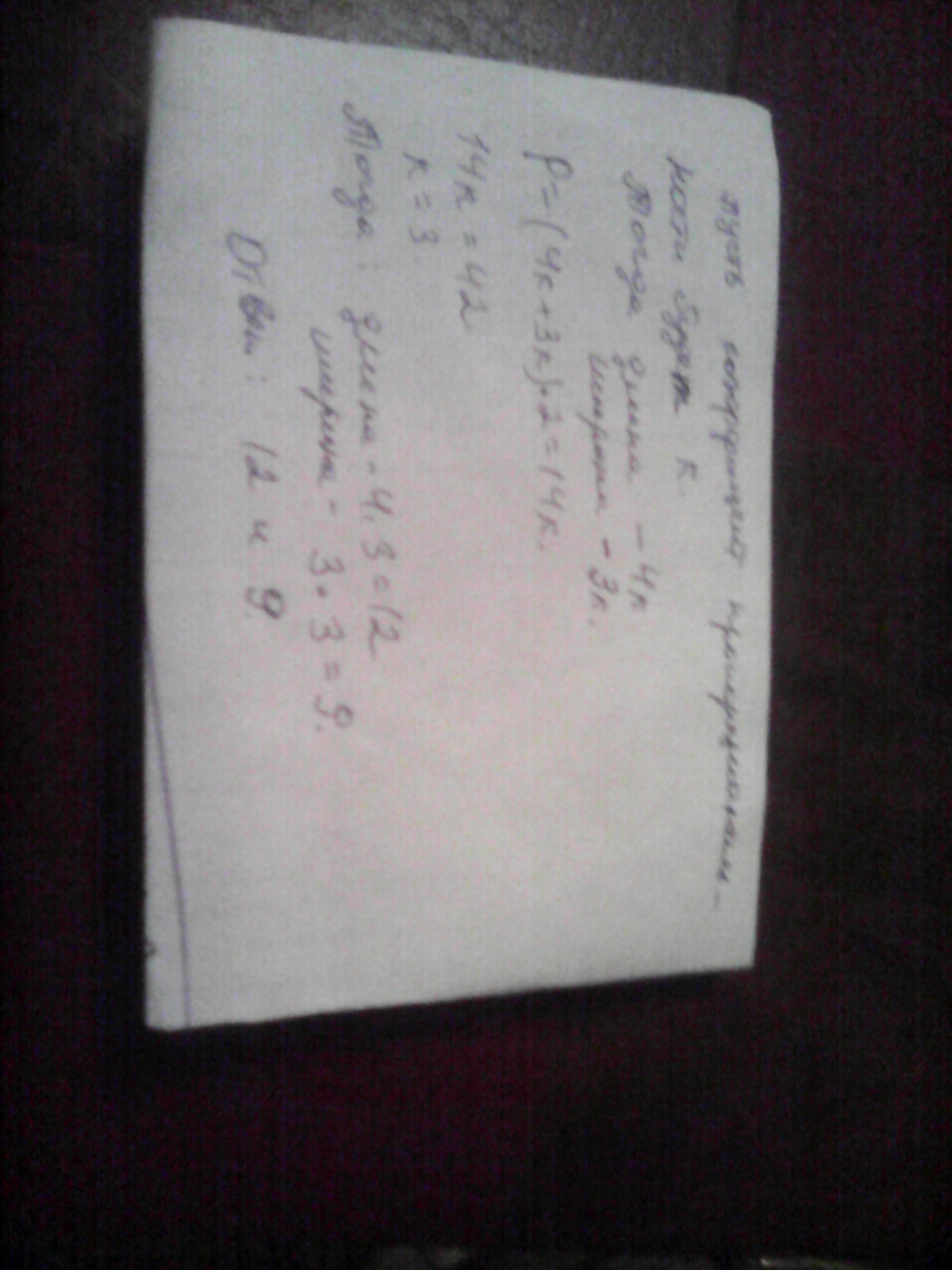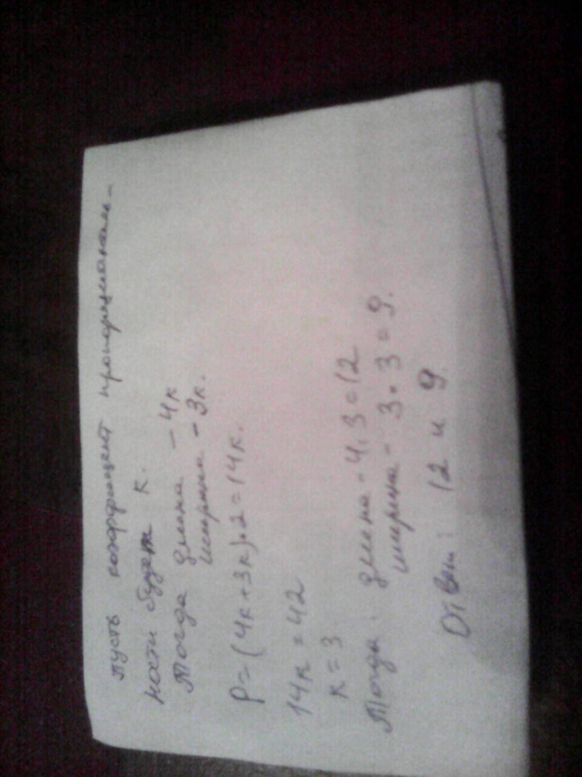 Периметр прямоугольника равен 42. Отношение его длины к ширине равно 4:3. Найдите площадь прямоуголника.
