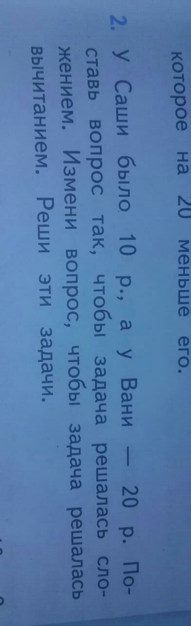 1 вопрос - сколько всего ? 20+10=30 2 вопрос на сколько больше у вани - 20-10=10