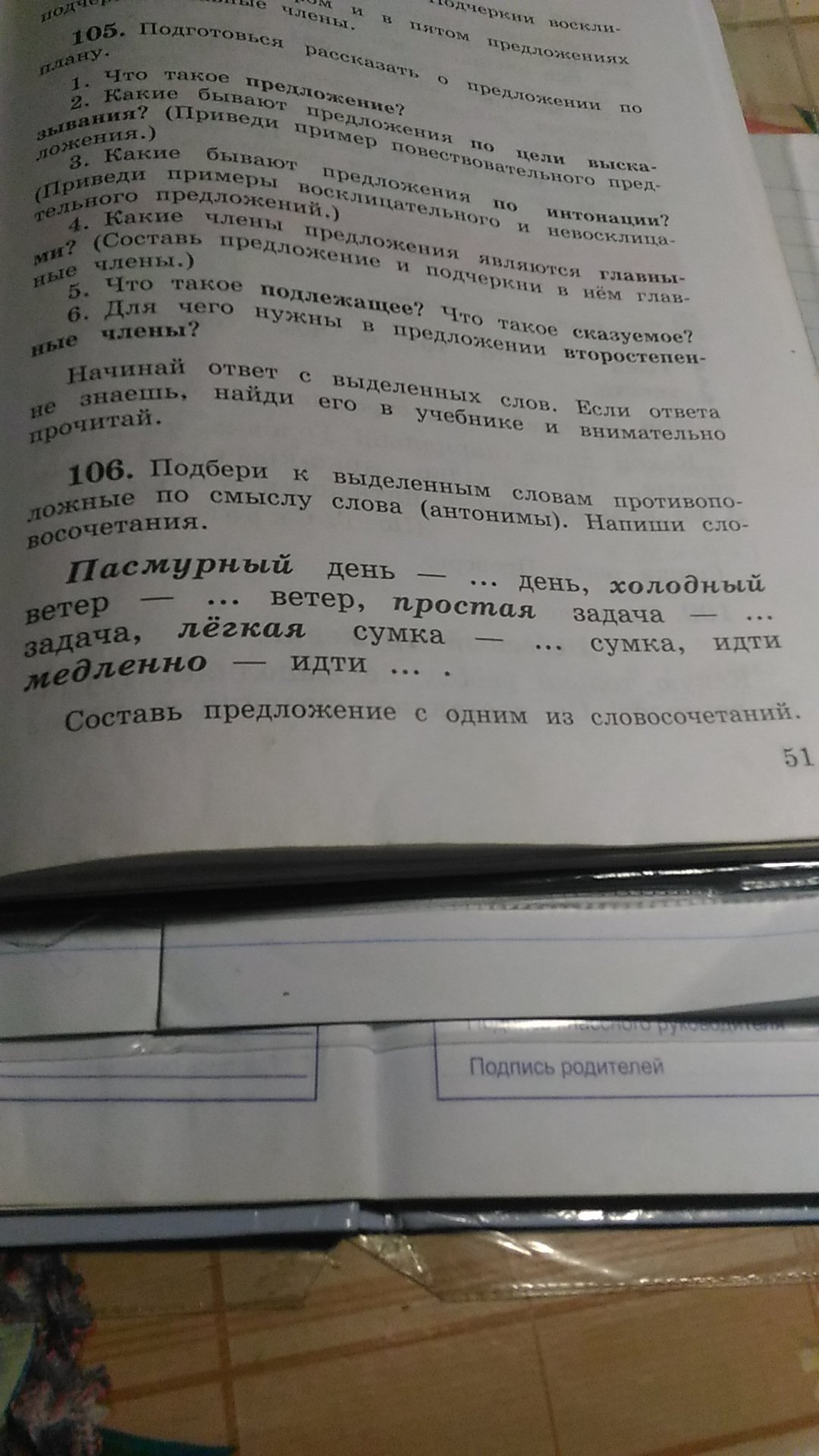 пасмурный -ясный, холодный -теплый, простая -сложная, легкая -тяжелая, медленно -быстро. Вчера был пасмурный день , а сегодня явный день.