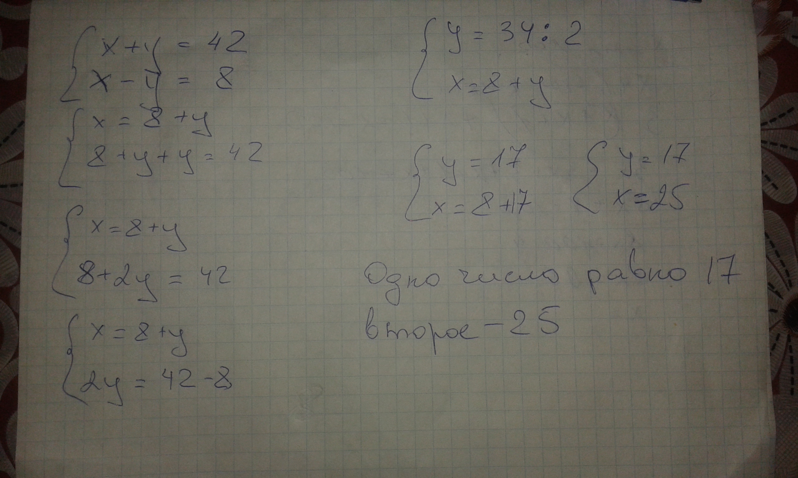 одно число равно 17 , второе число 25