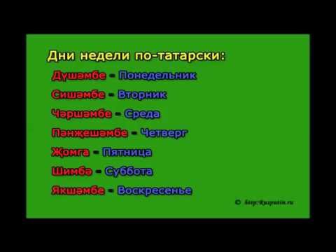 День - көн (кон) Неделя - аҙна (азна) Дни недели - аҙна көндәре (азна кондаре) Понедельник - дүшәмбе (душамбе) Вторник - шишәмбе (шишамбе) Среда - шаршамбы Четверг - кесаҙна (кесазна) Пятница - йома Суббота - шәмбе (шамбе) Воскресенье - йәкшәмбе (йакшамбе)