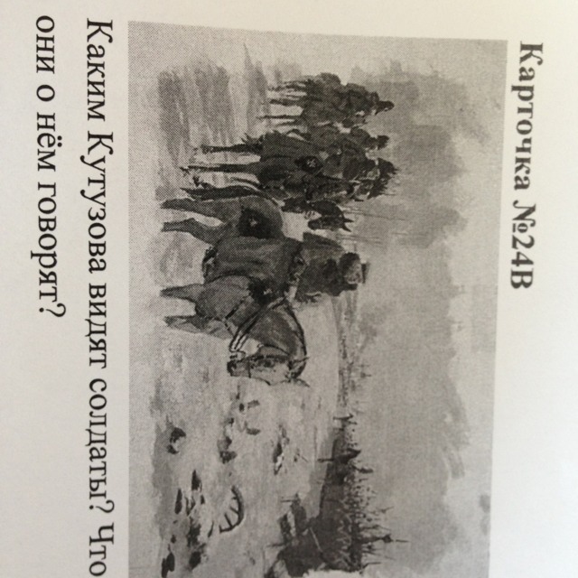 1.Кутузов предстает в этой главе как отец всех этих солдат. Он заботиться об их подготовленности в плане обмундирования, замечая, что у них проблемы с обувью. Он радуется вместе с солдатами, когда те распевают песни, пребывая в хорошем настроении после осмотра войск.