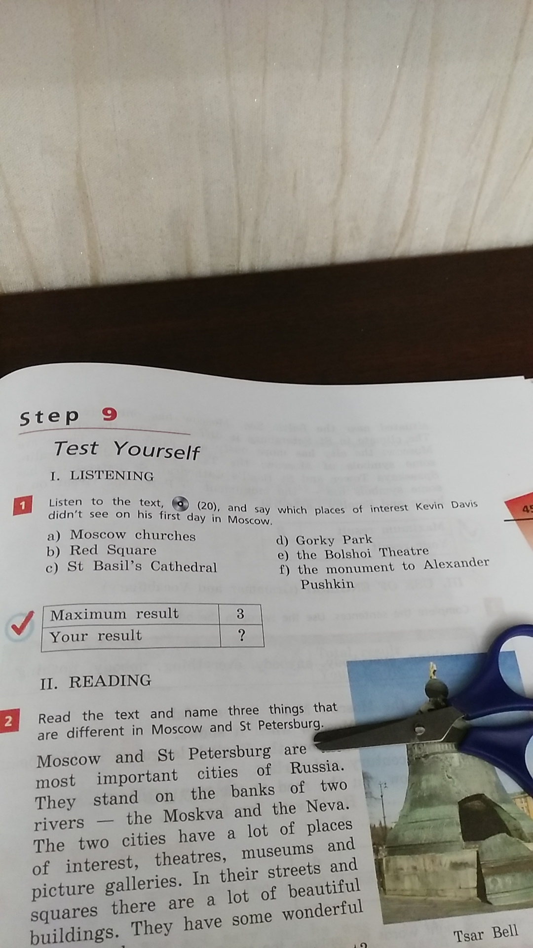 listen to the texst and say which places of interest kevin davis didn't see on his first day in moskow