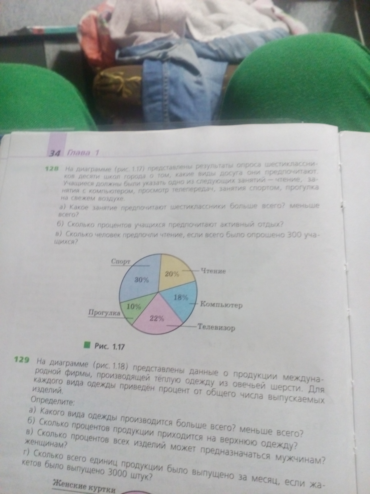 б)22% выбрали шестиклассники активный отдых-теливизор