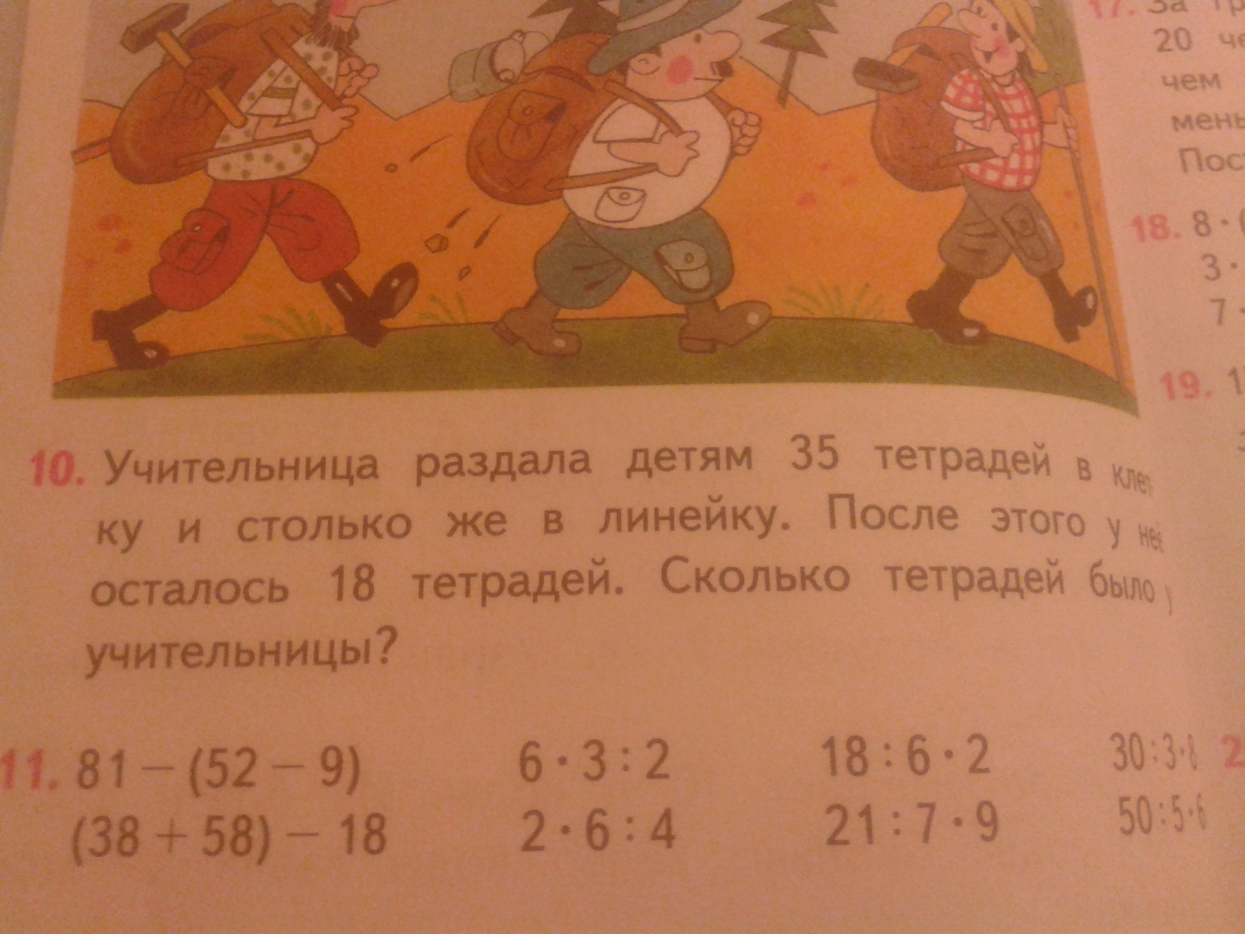 35 в линейку,столько же в строчку ( тоже 35 ),а 18 это остаток.